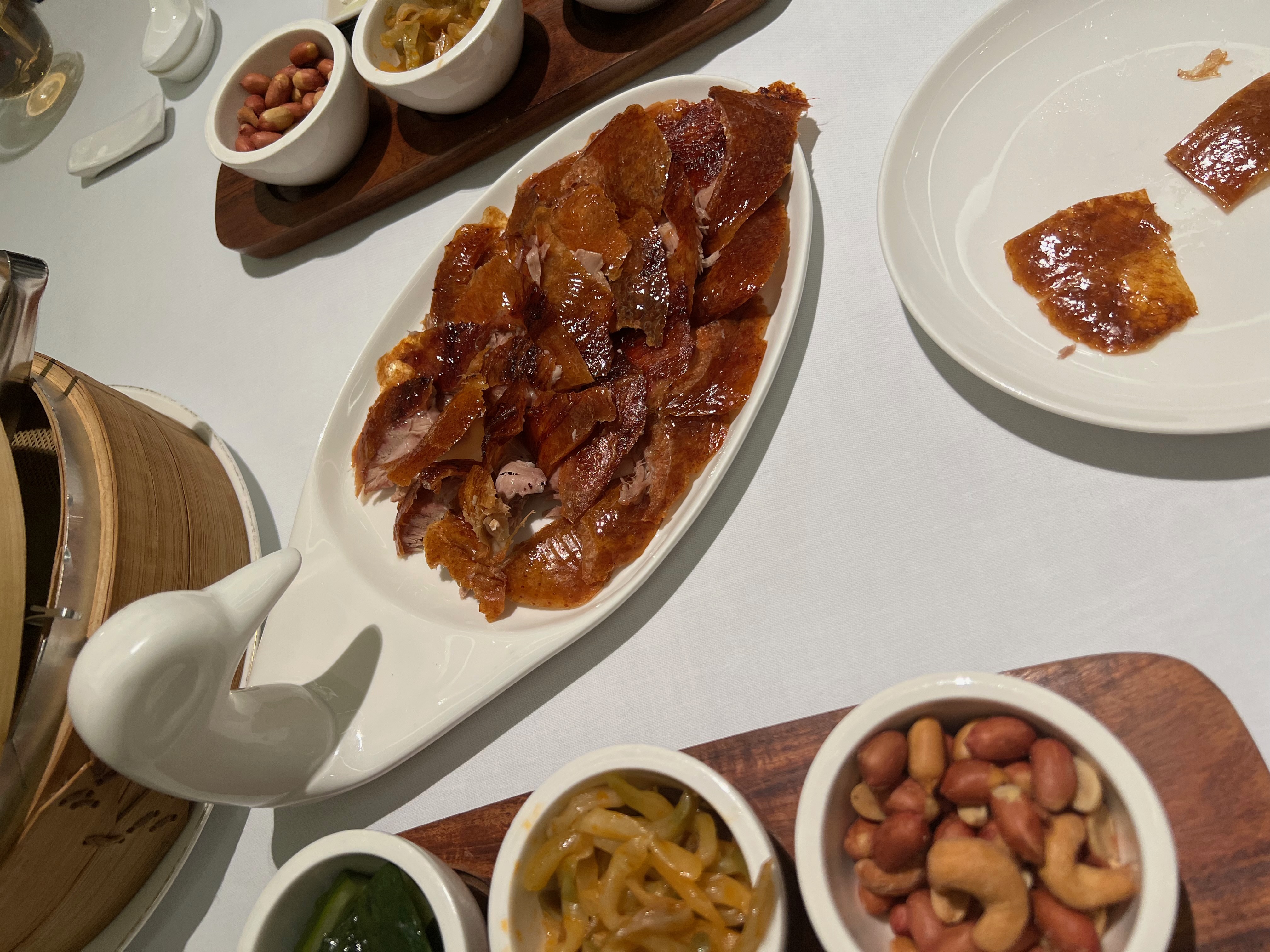웨이루의 베이징덕은 전취덕 출신의 셰프가 여러 차례 양념을 발라가며 베이징 현지 방식으로 구워낸 오리 요리로서