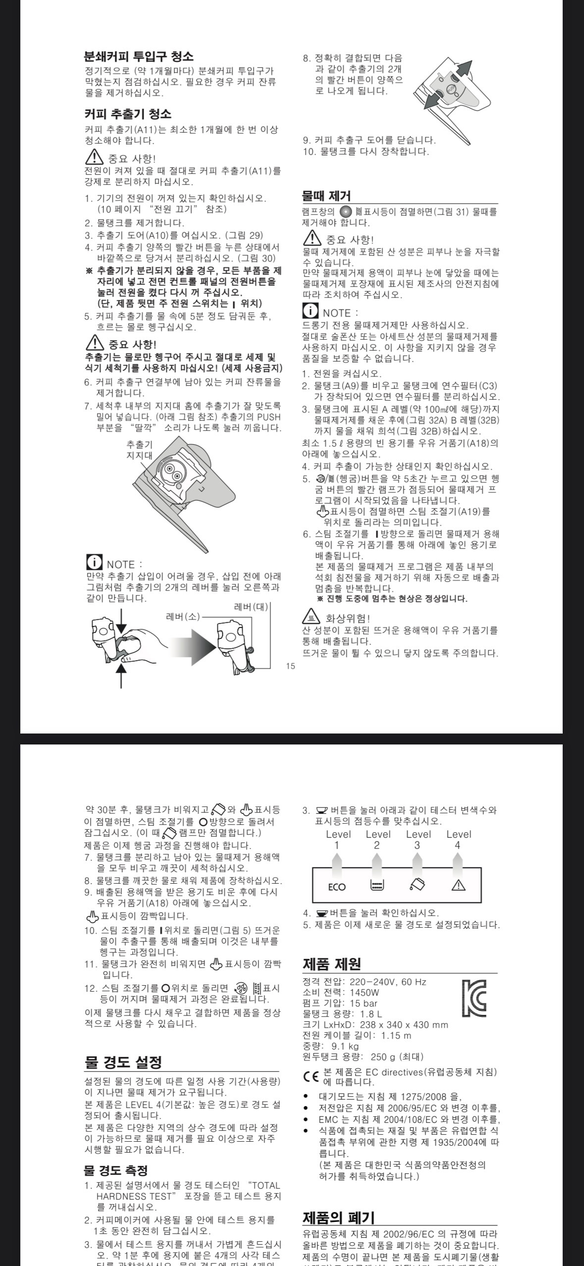 커피 추출기는 최소한 1개월에 한 번 이상 청소해야 한다고 하는데