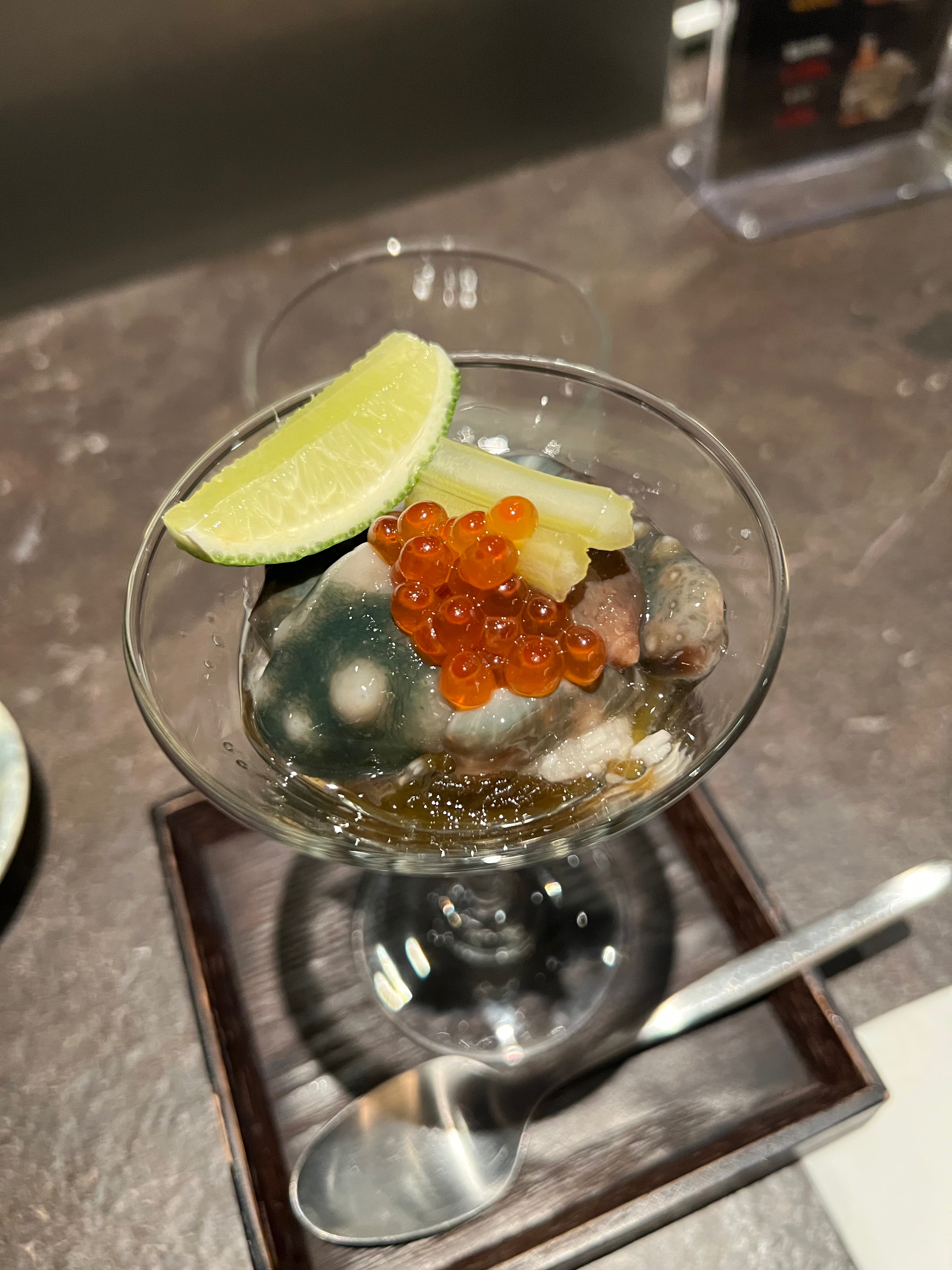 새콤한 맛에 해삼이 오독오독 씹혀서 시원한 느낌이 들더라구요.