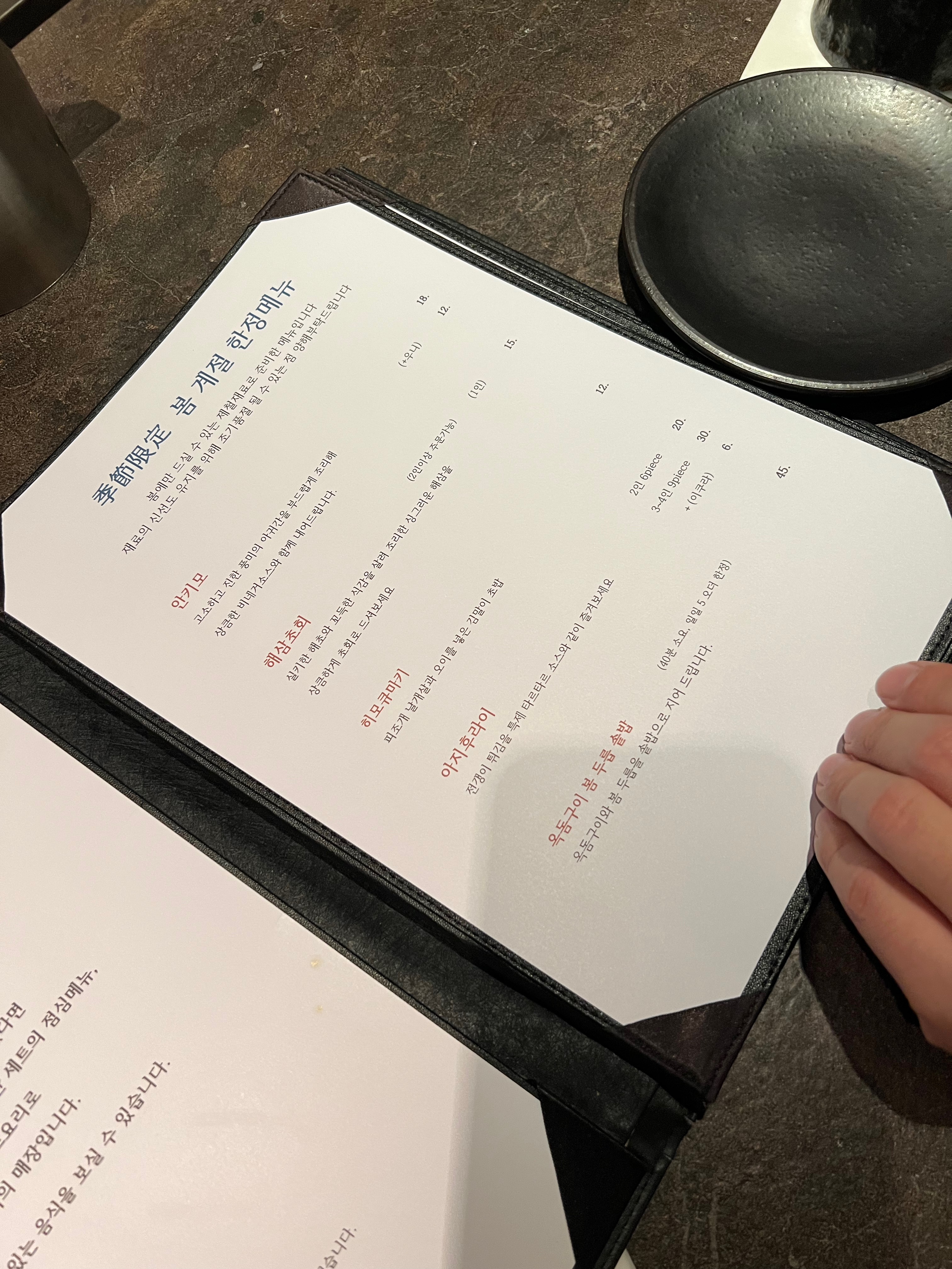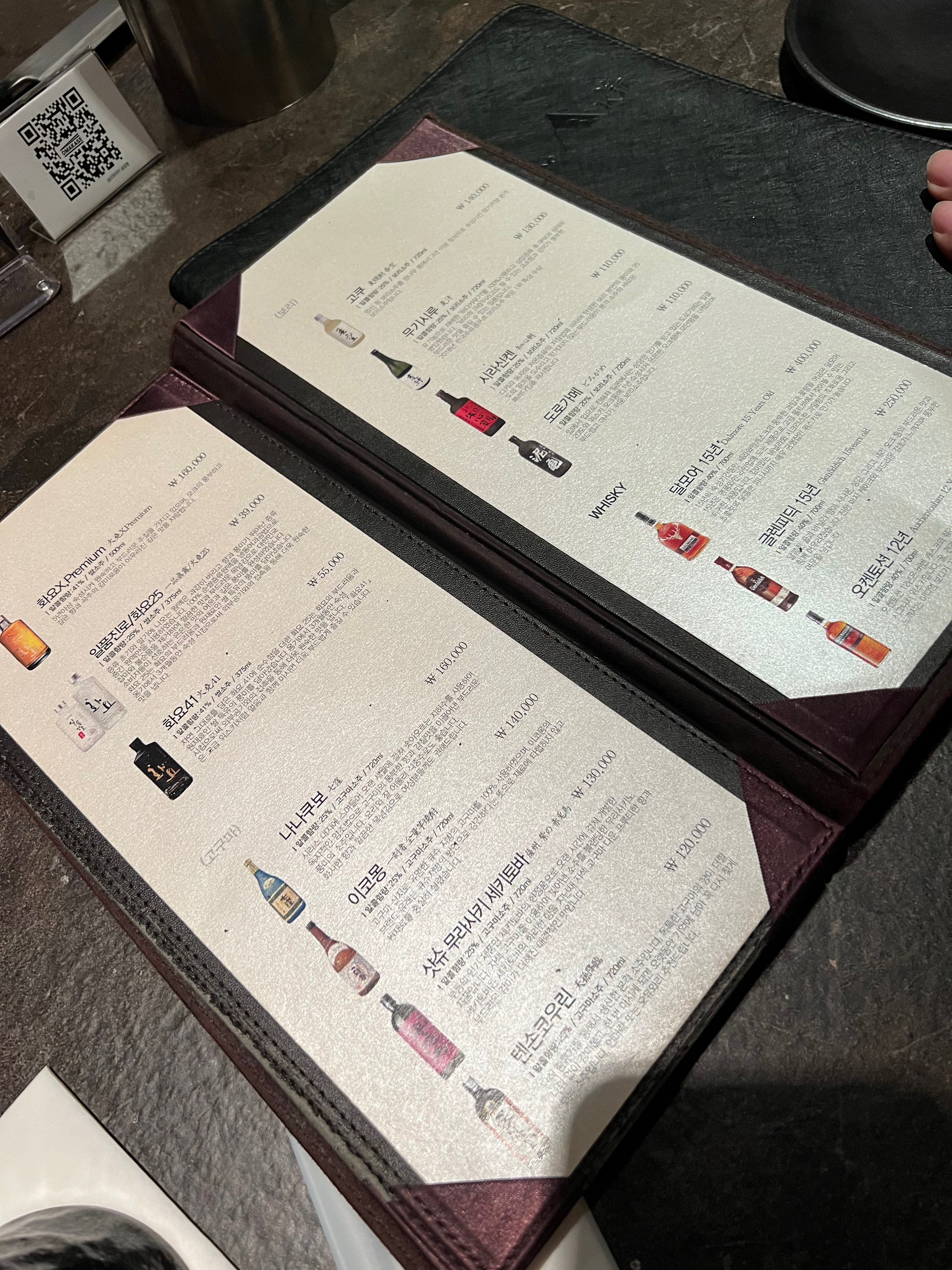 추가메뉴판은 QR로 보고 앞에 쉐프님께 말씀드리면 되어용.