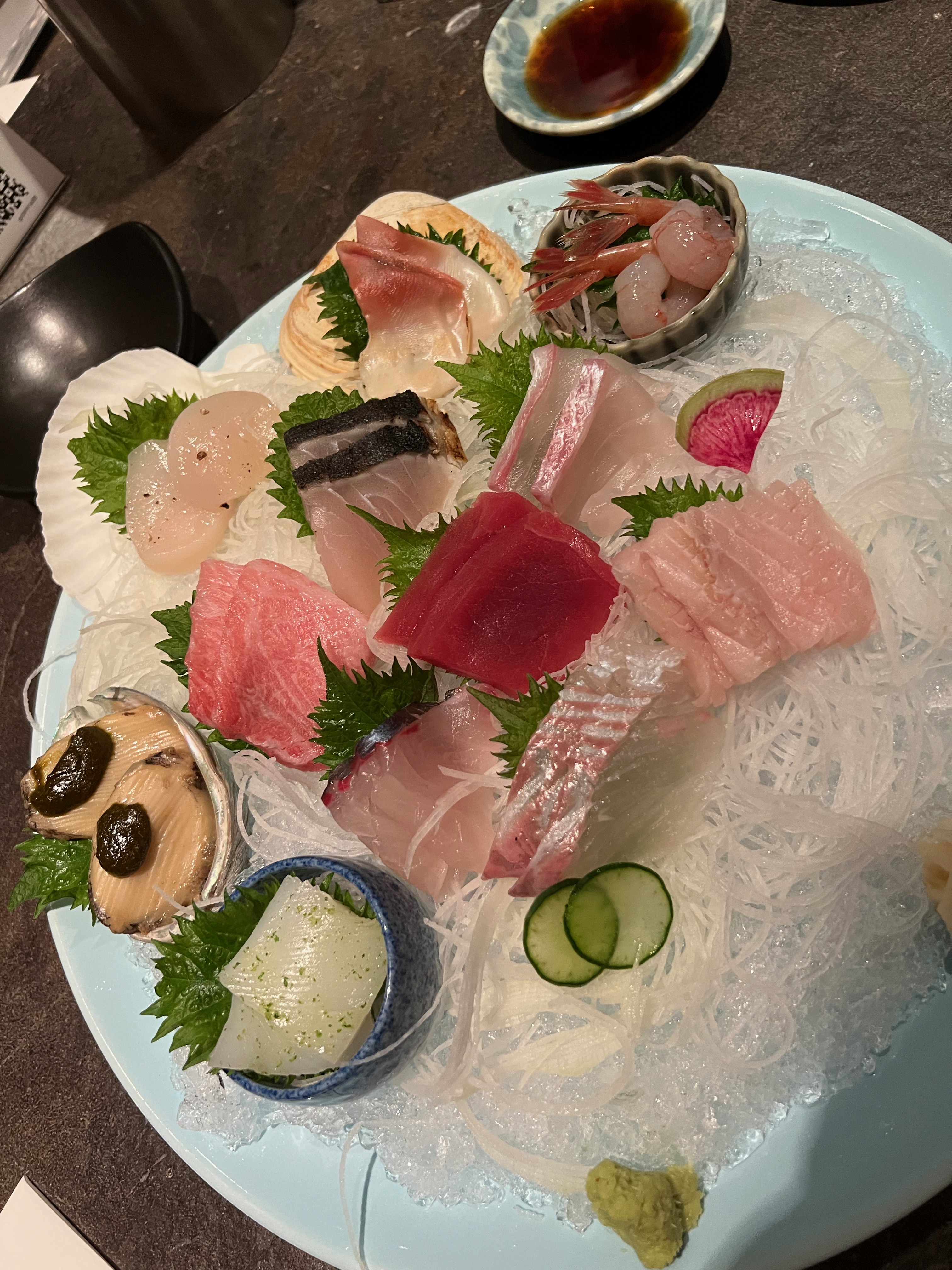 처음 전복부터 시작해서.. 저는 제일 맛없는 회를 순서대로 먹엇지만