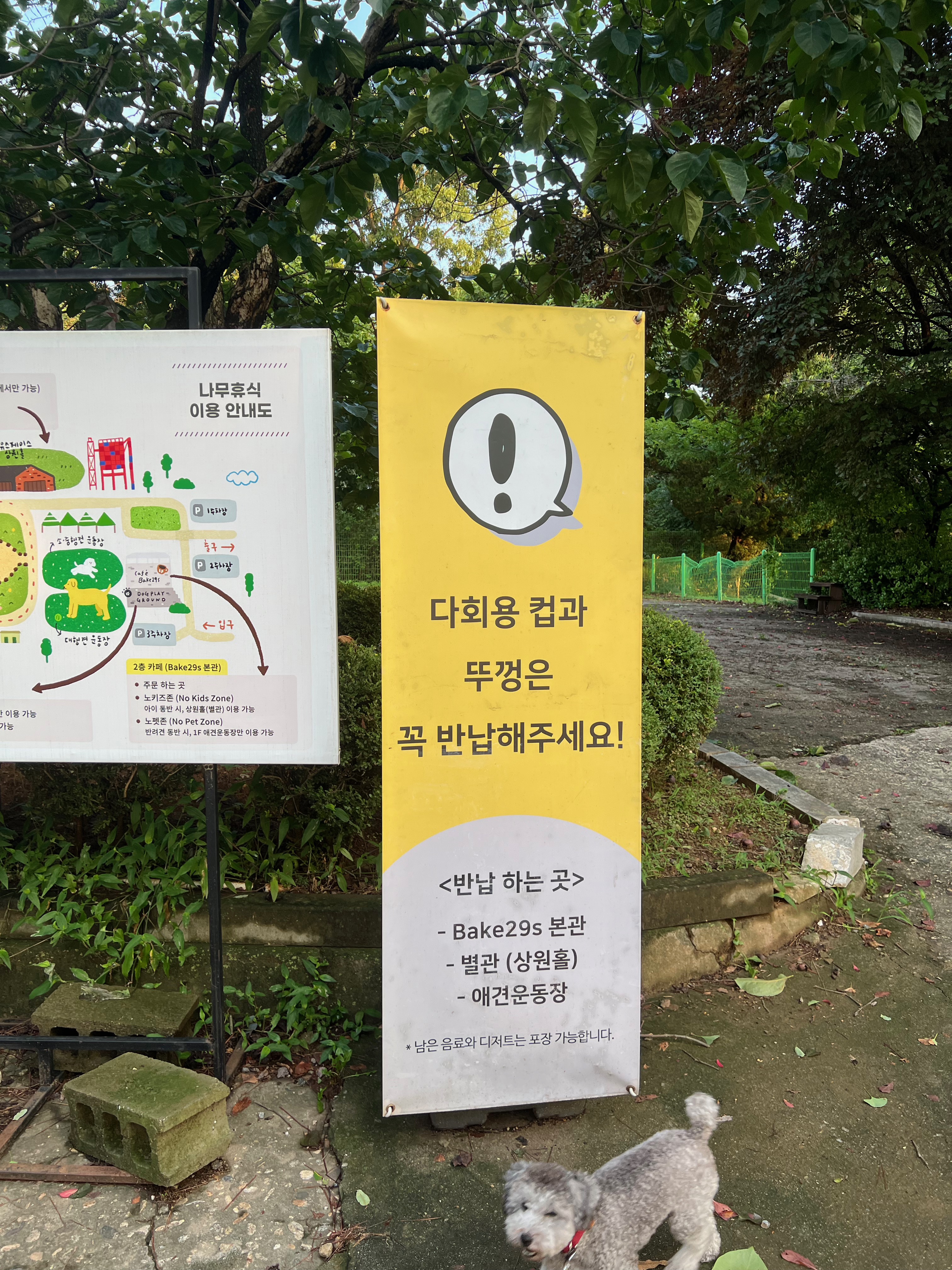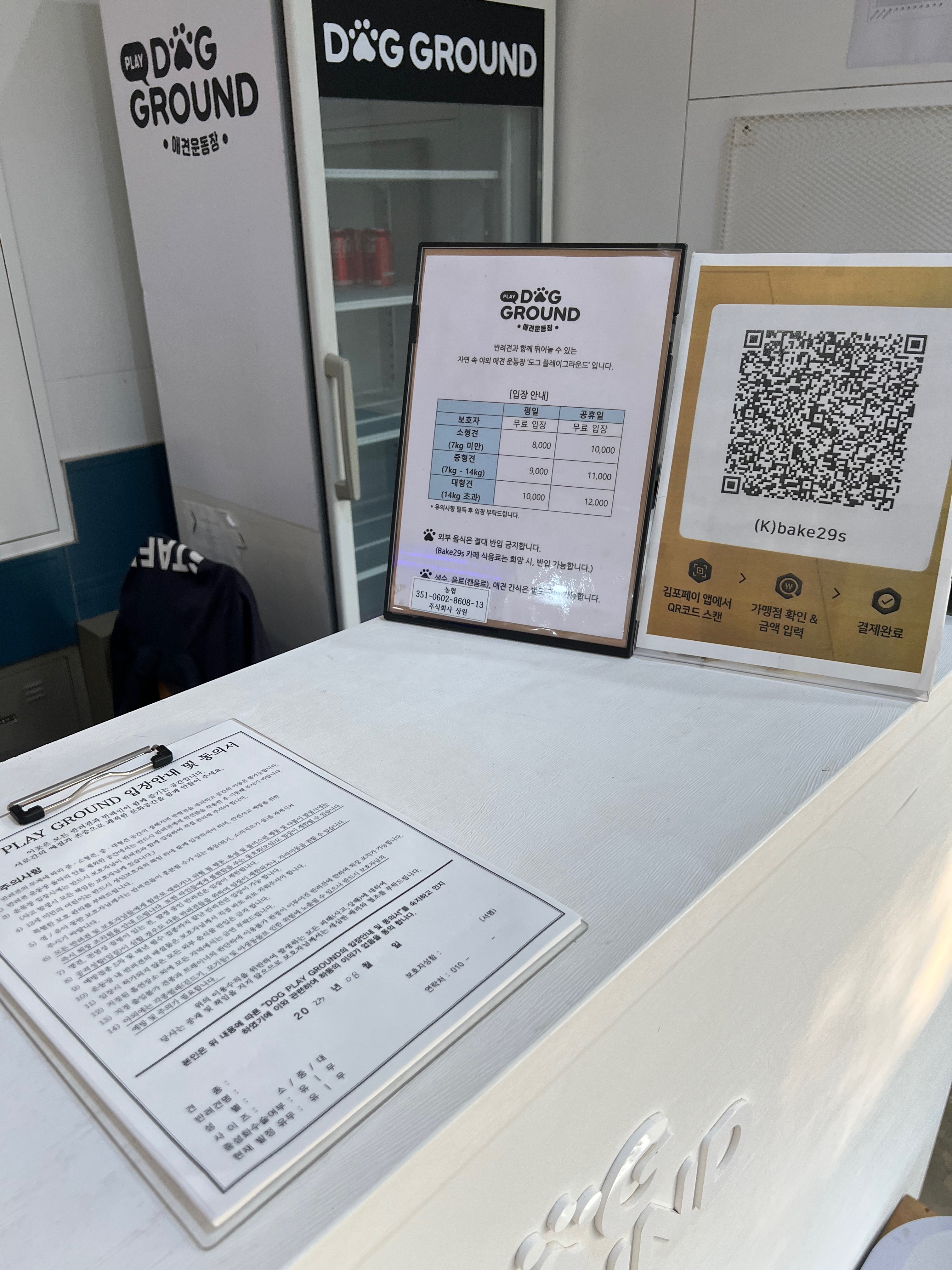 한명만 입장해서 커피를 사고 함께있는 강아지놀이터에 방문하는 것입니다.