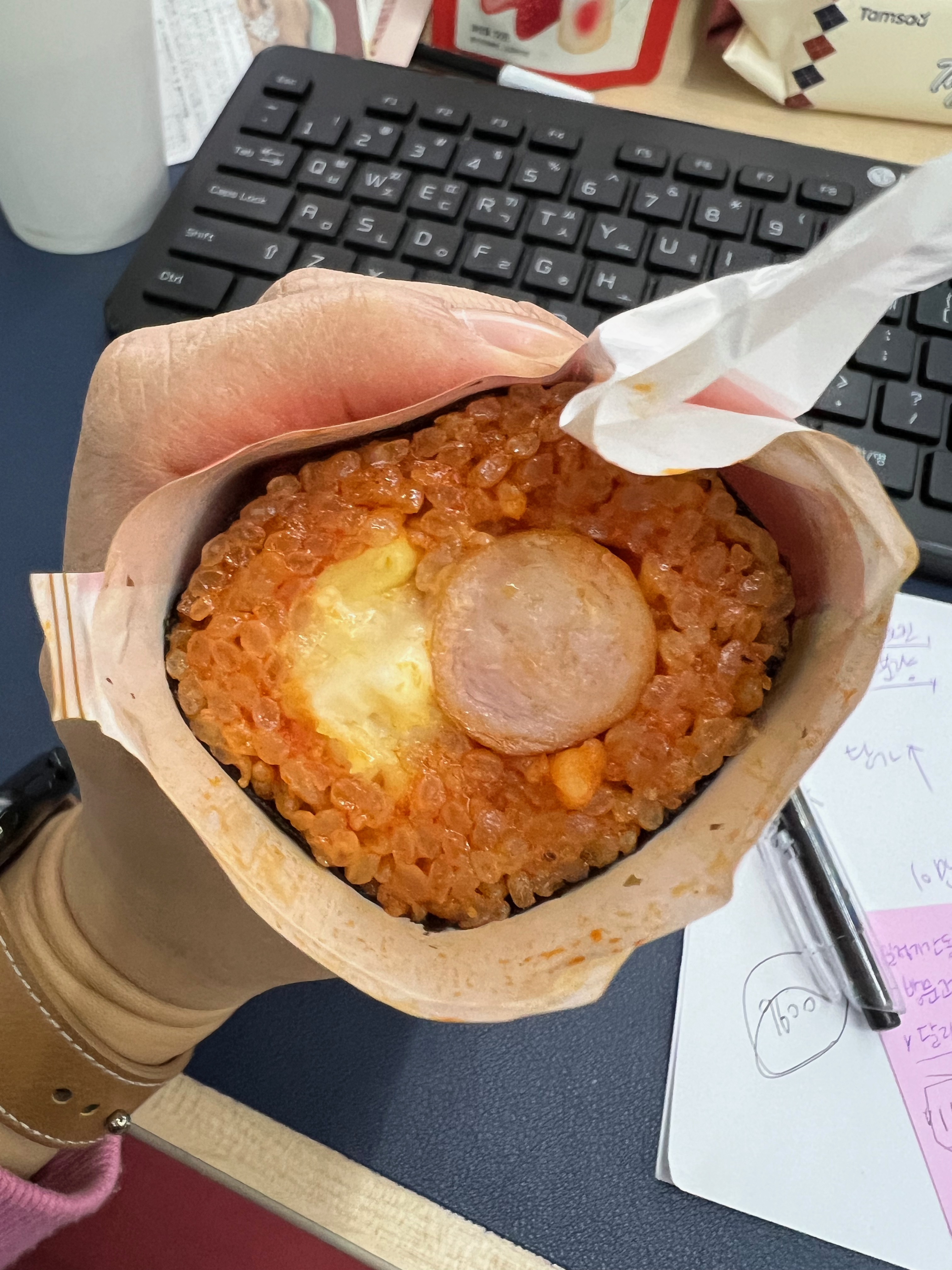 불닭삼각김밥을 먹는데