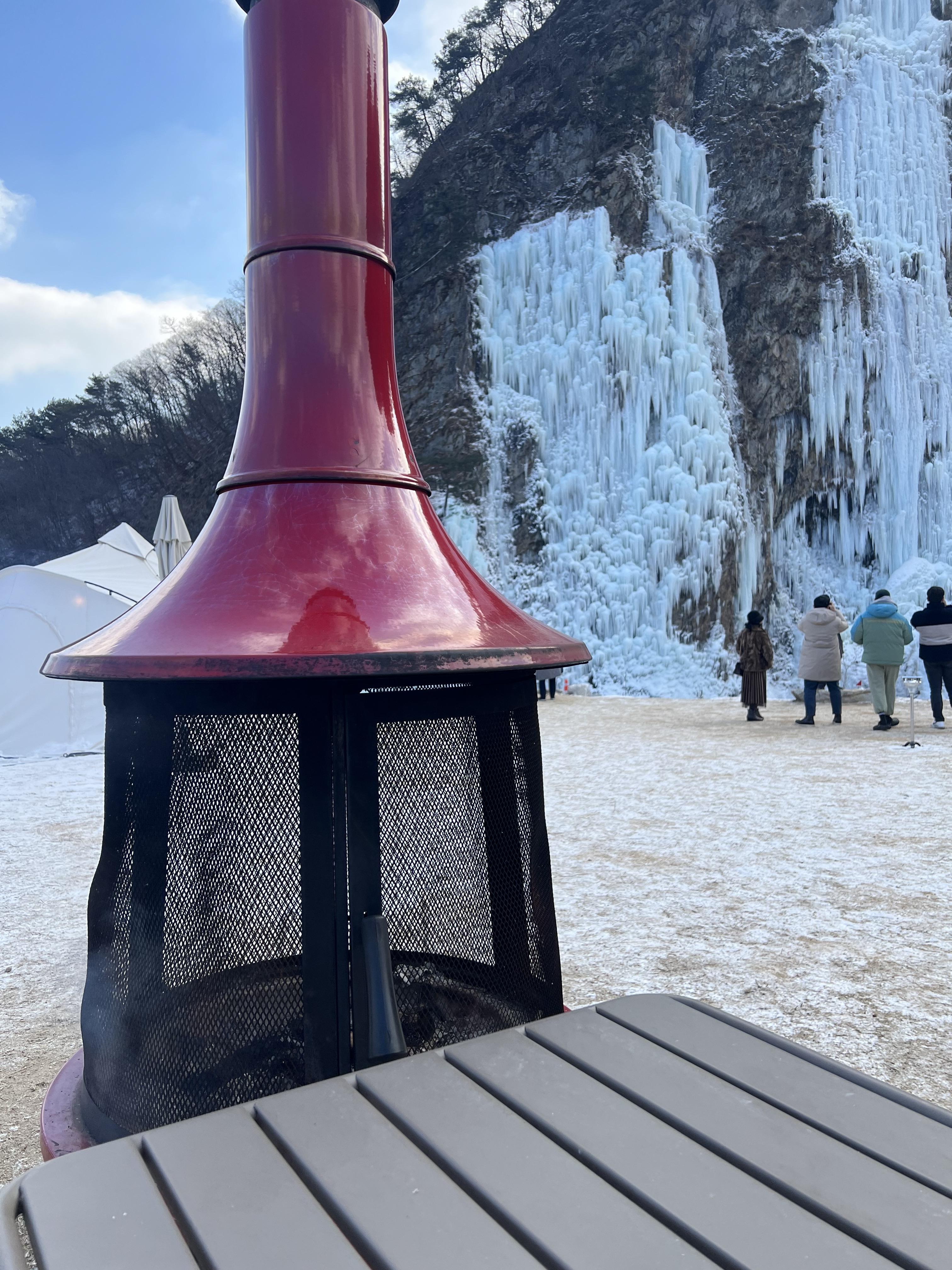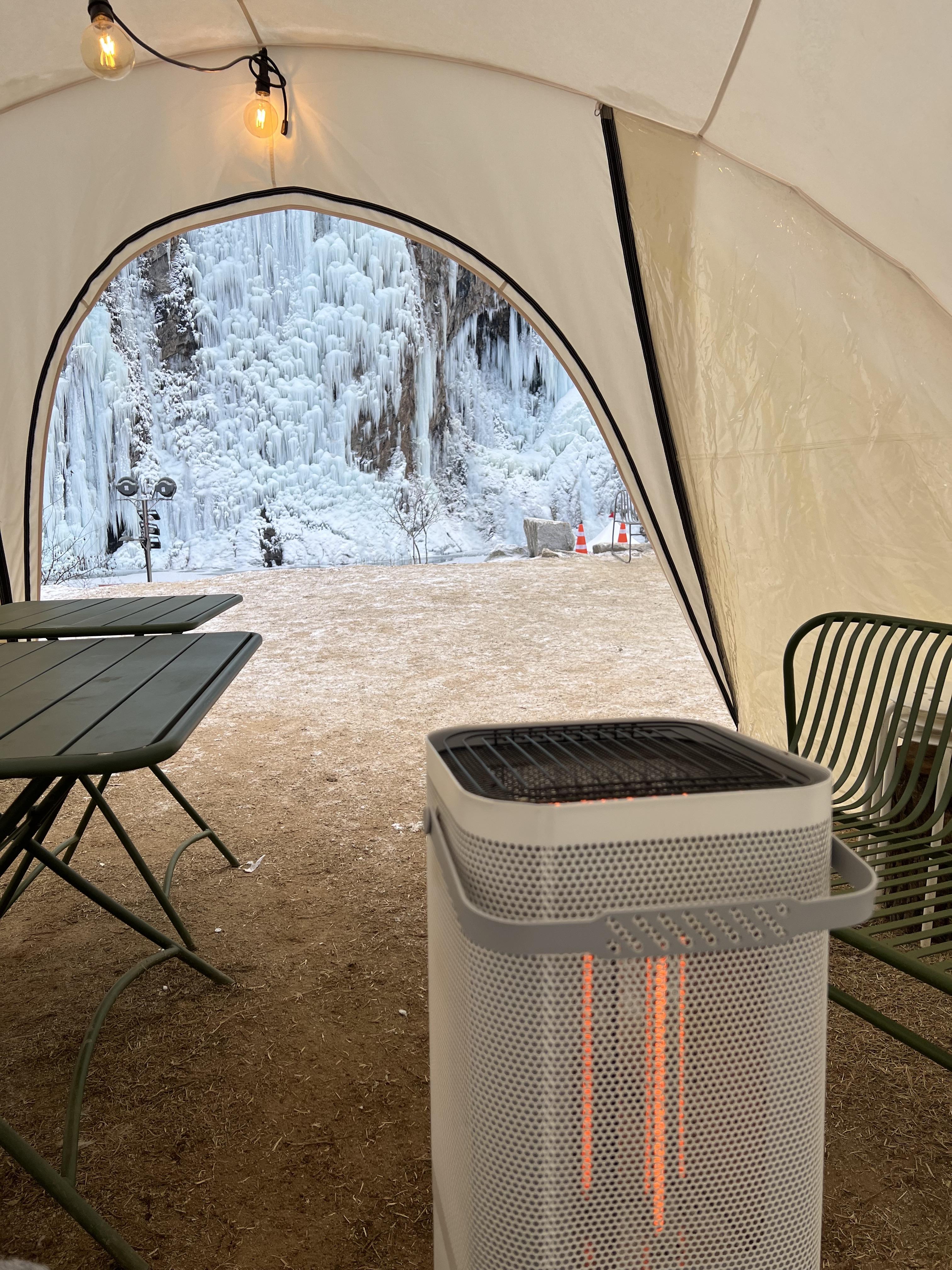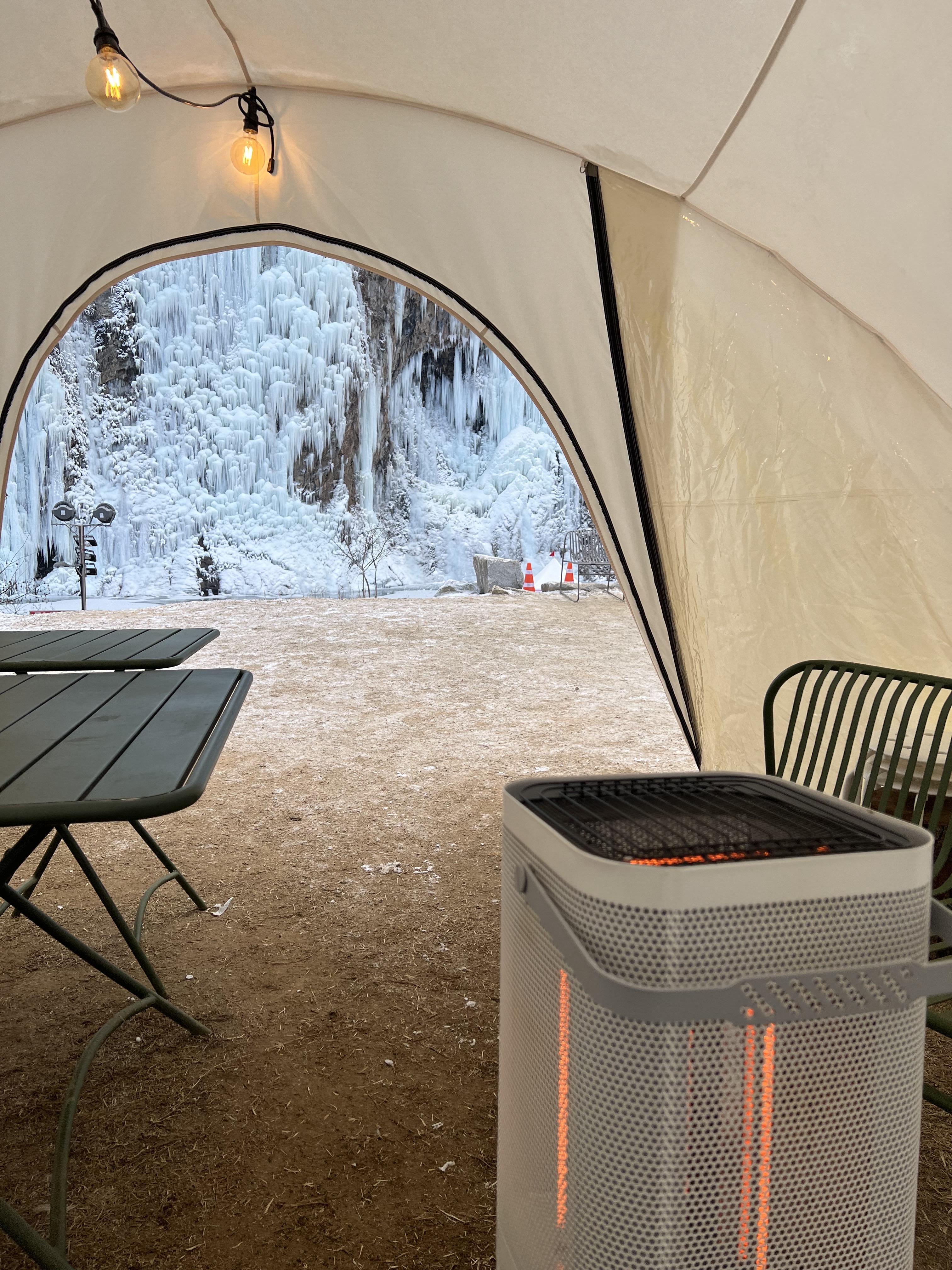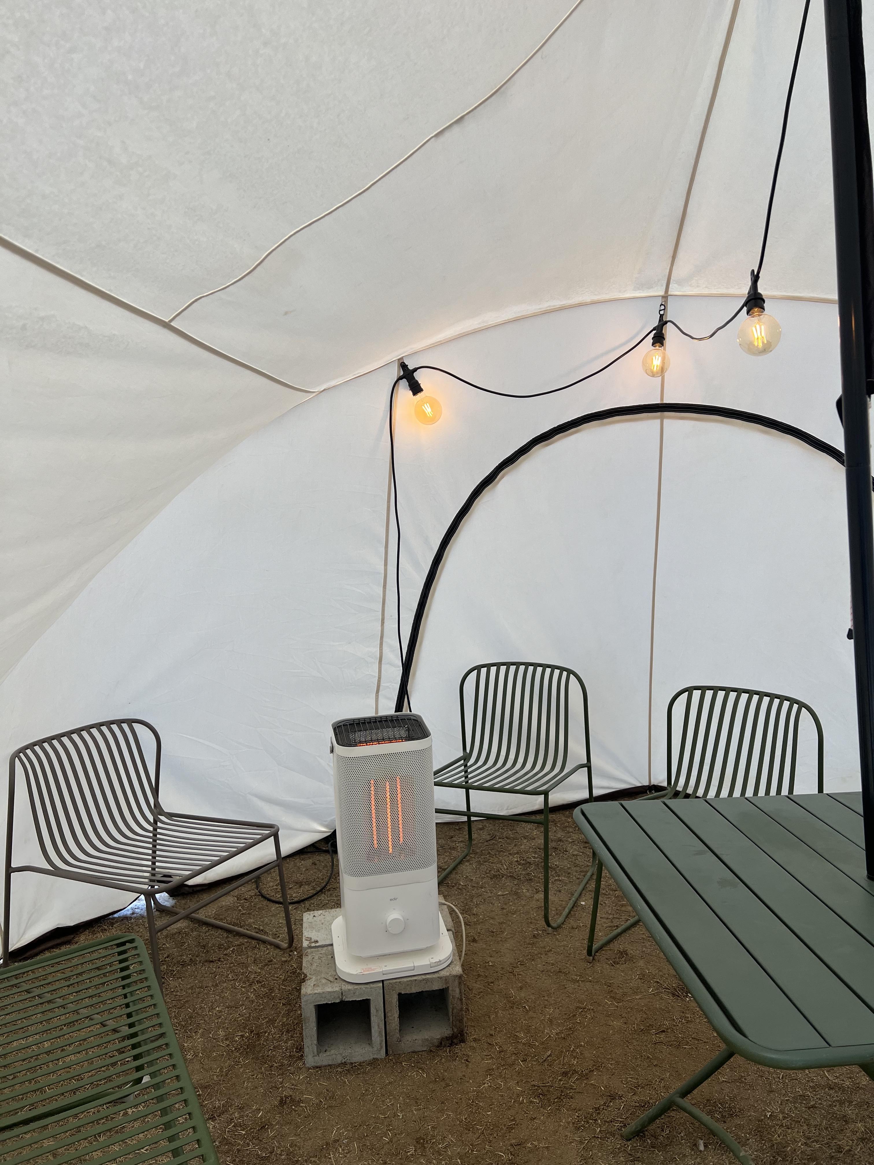 야외에는 난로도 있고 텐트안에 전기 히터도 있었어요.