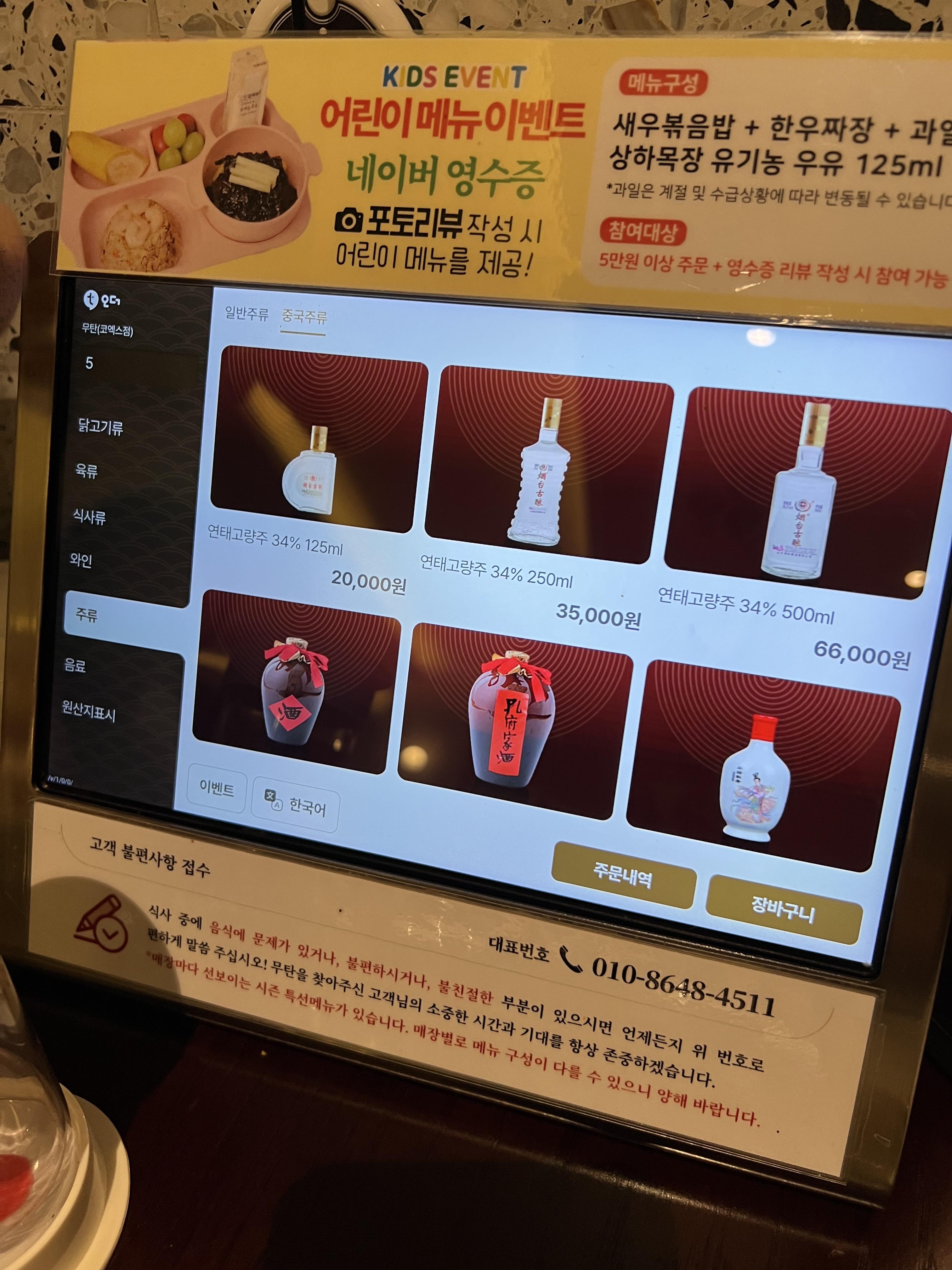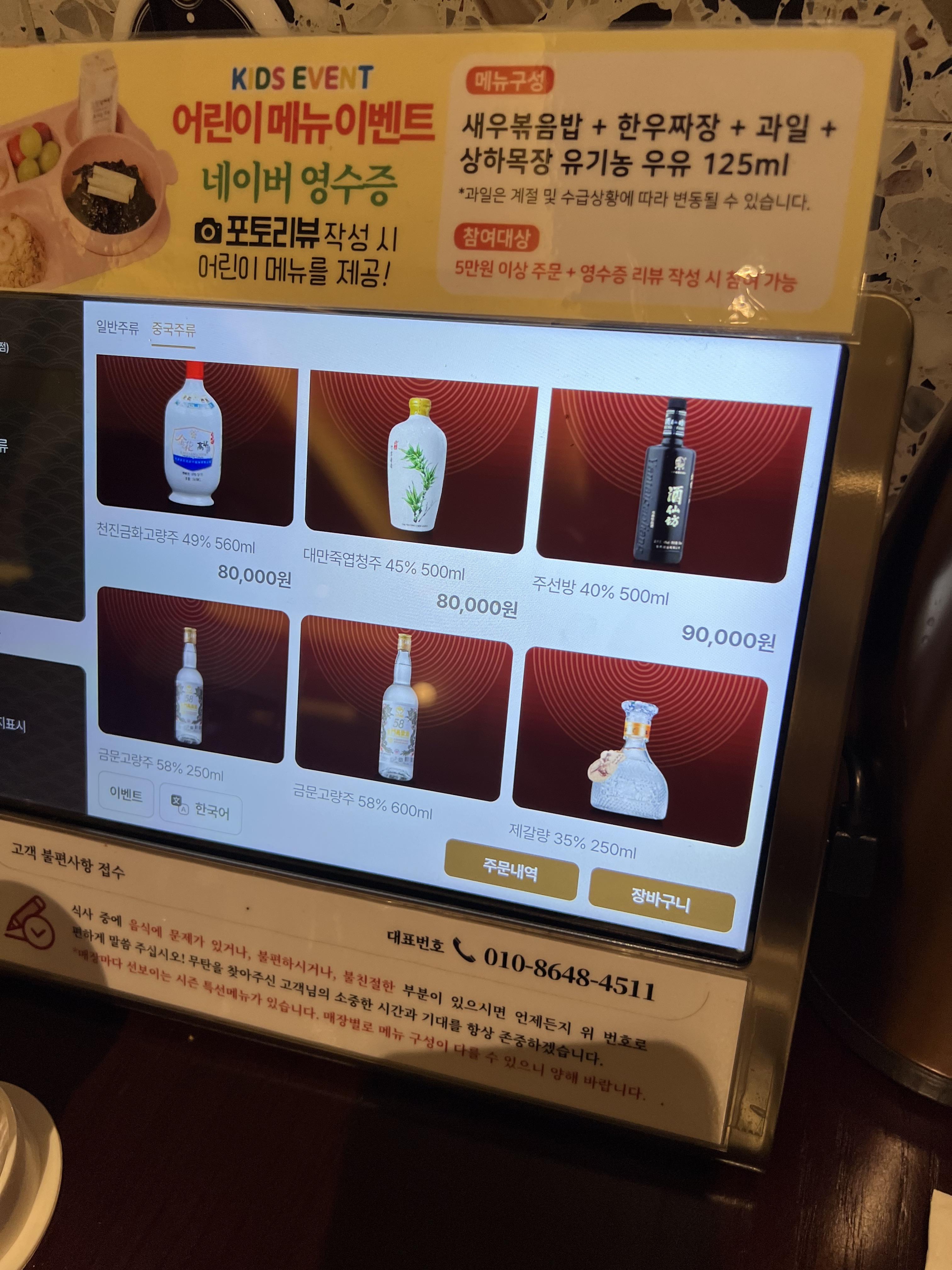 제갈량주 저번에 인터컨티넨탈 호텔 웨이루에서 시켰을때는 8만원이었나.. 그랬는데 여기는 저렴하네요.