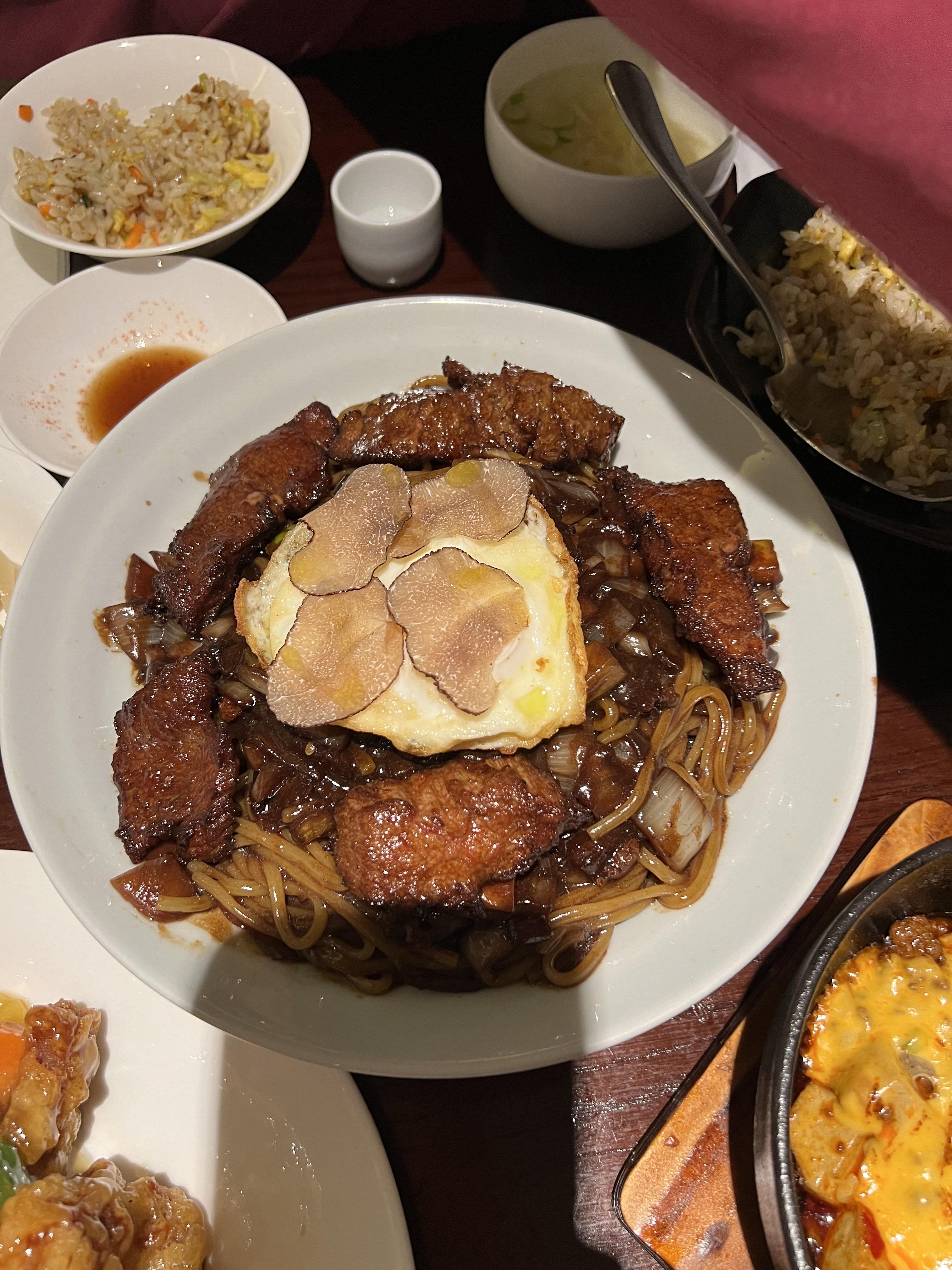 한우와 트러플오일 계란 올라간 짜장면