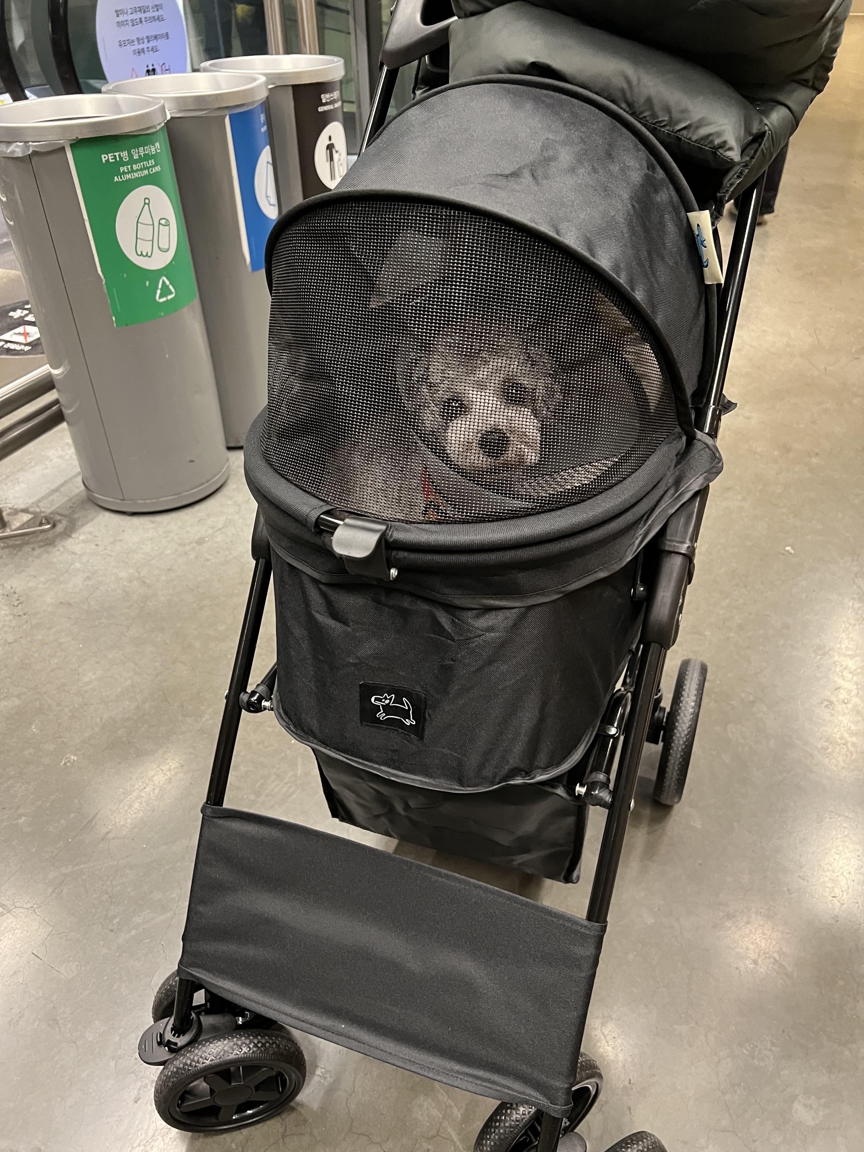 그러나! 강아지를 캔넬 혹은 유모차에 태워 모두 가리면 동반가능합니다.