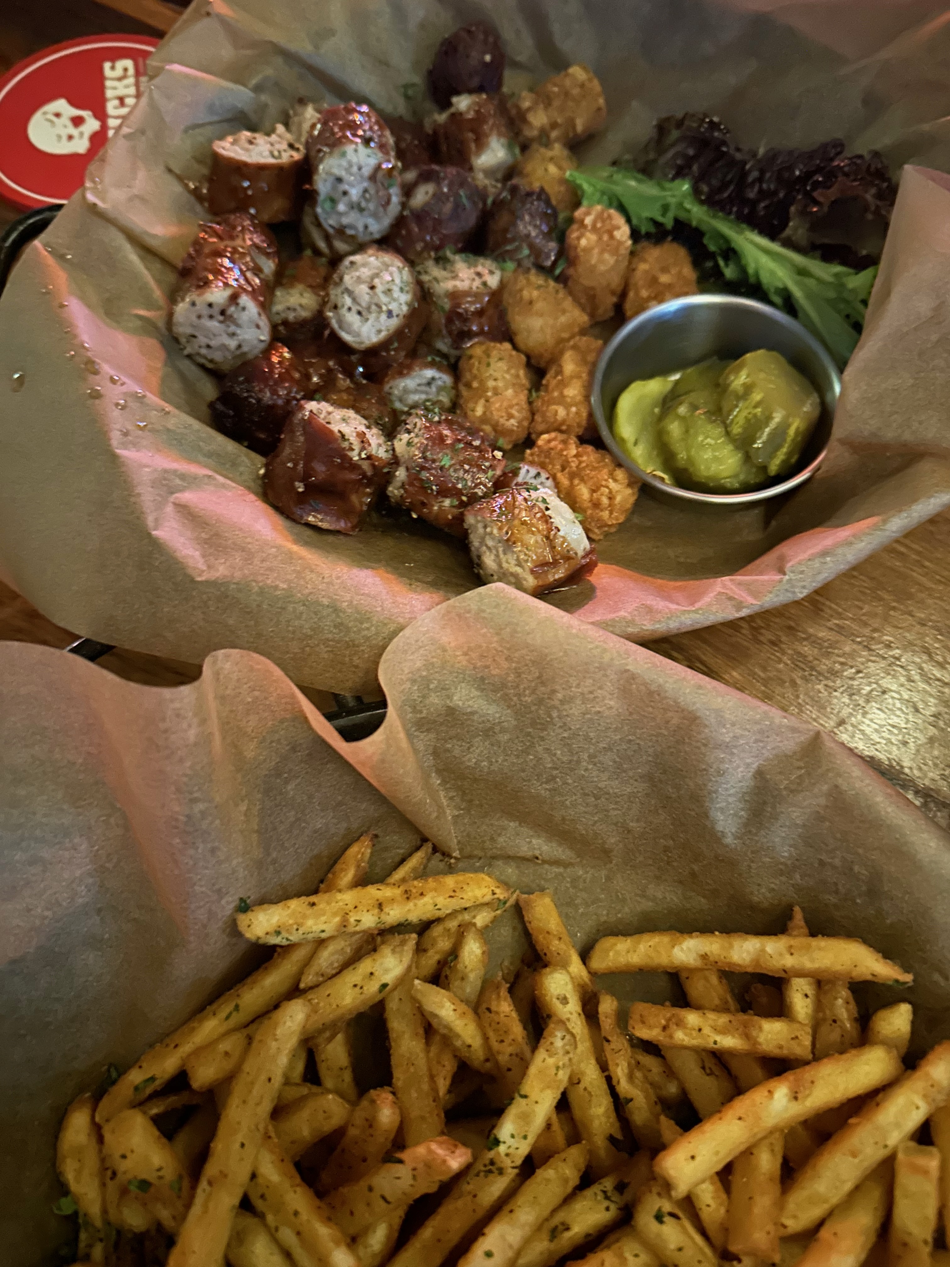 안주로는 치즈 베이컨 감자튀김과 척스 수제 소세지를 주문했는데, 퀄리티가 괜찮았습니다.