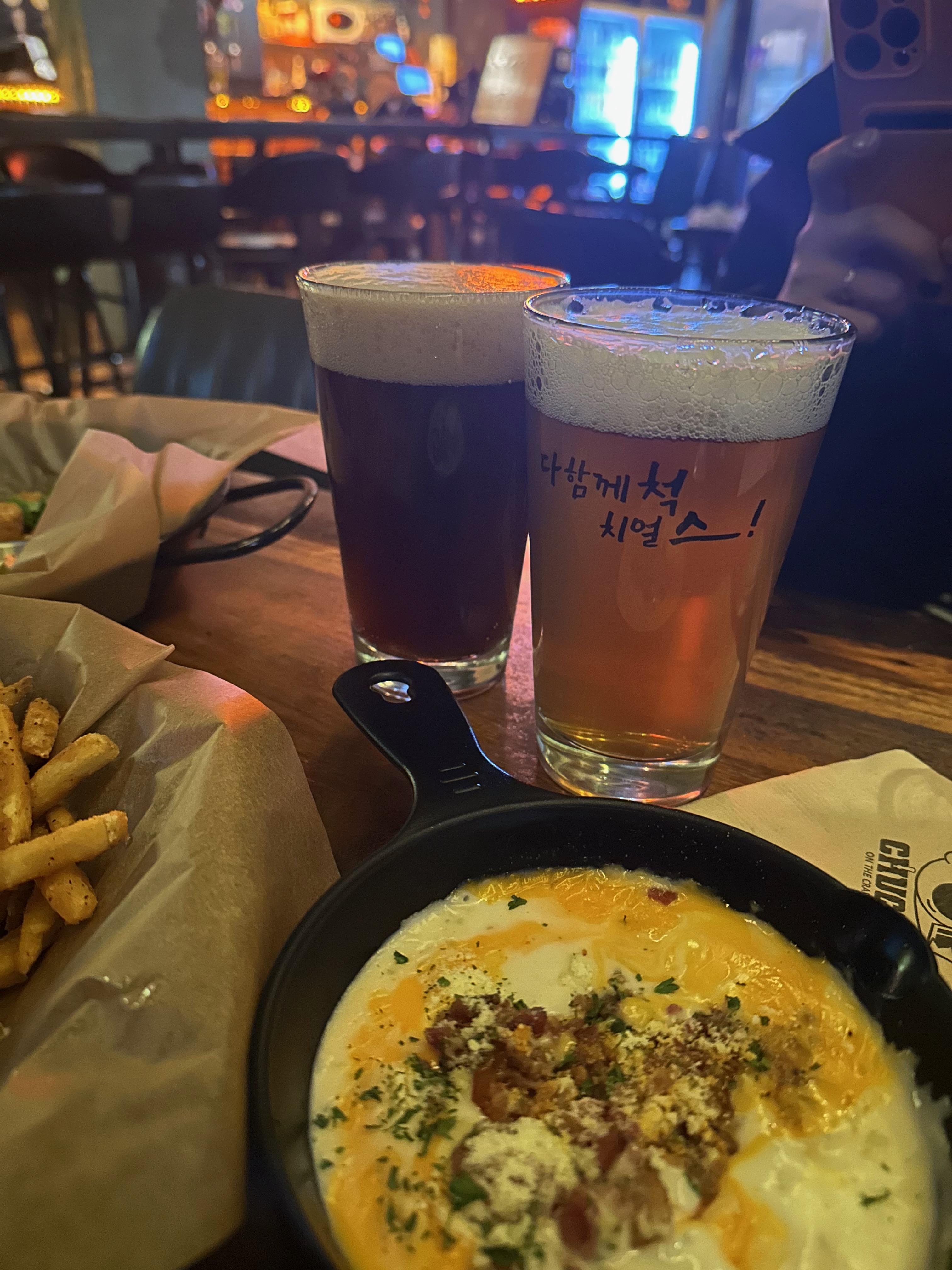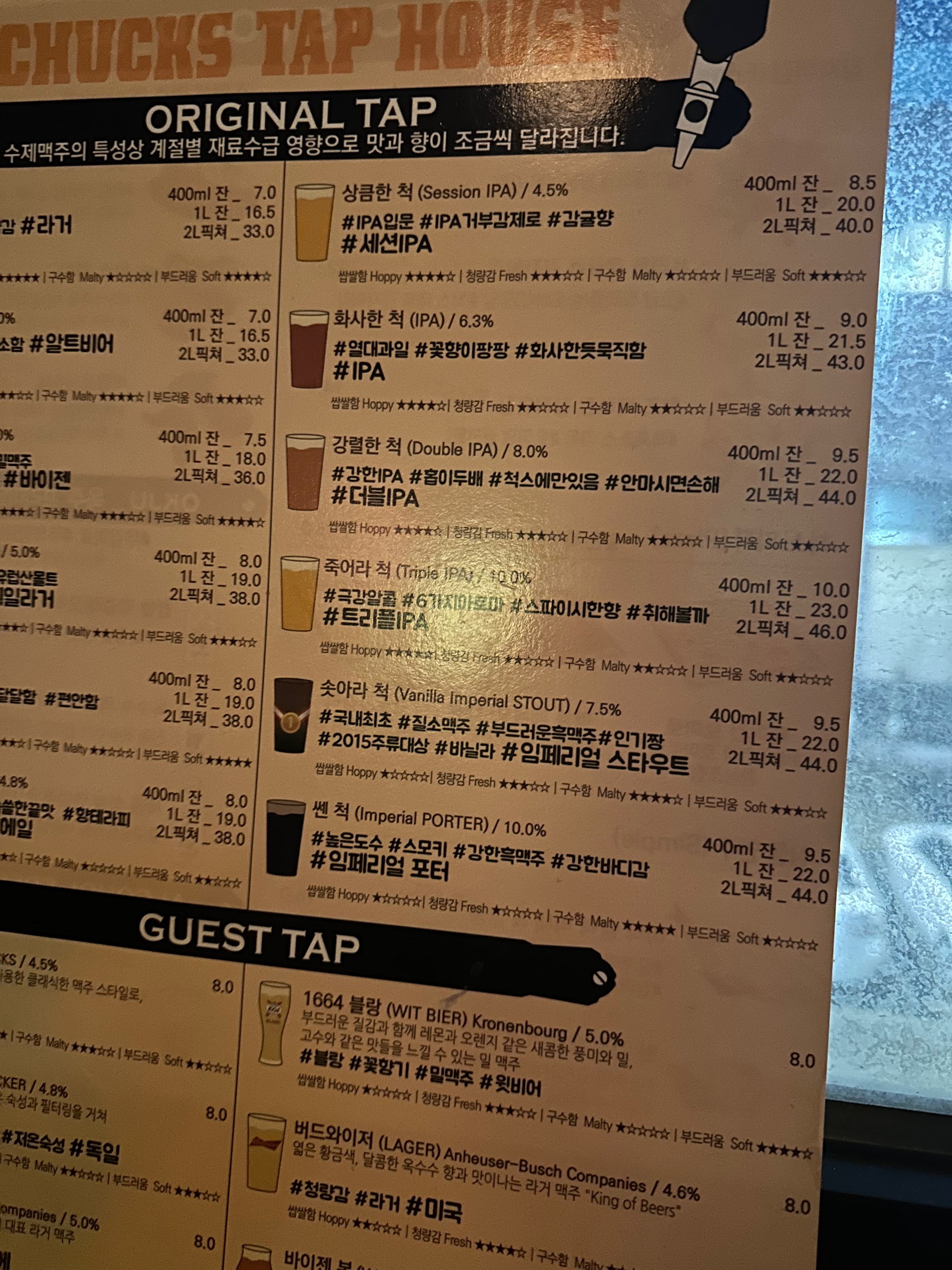 우리는 이곳에서 강렬한 척, 솟아라 척, 쎈 척 세 가지의 수제 맥주를 즐겼어요.