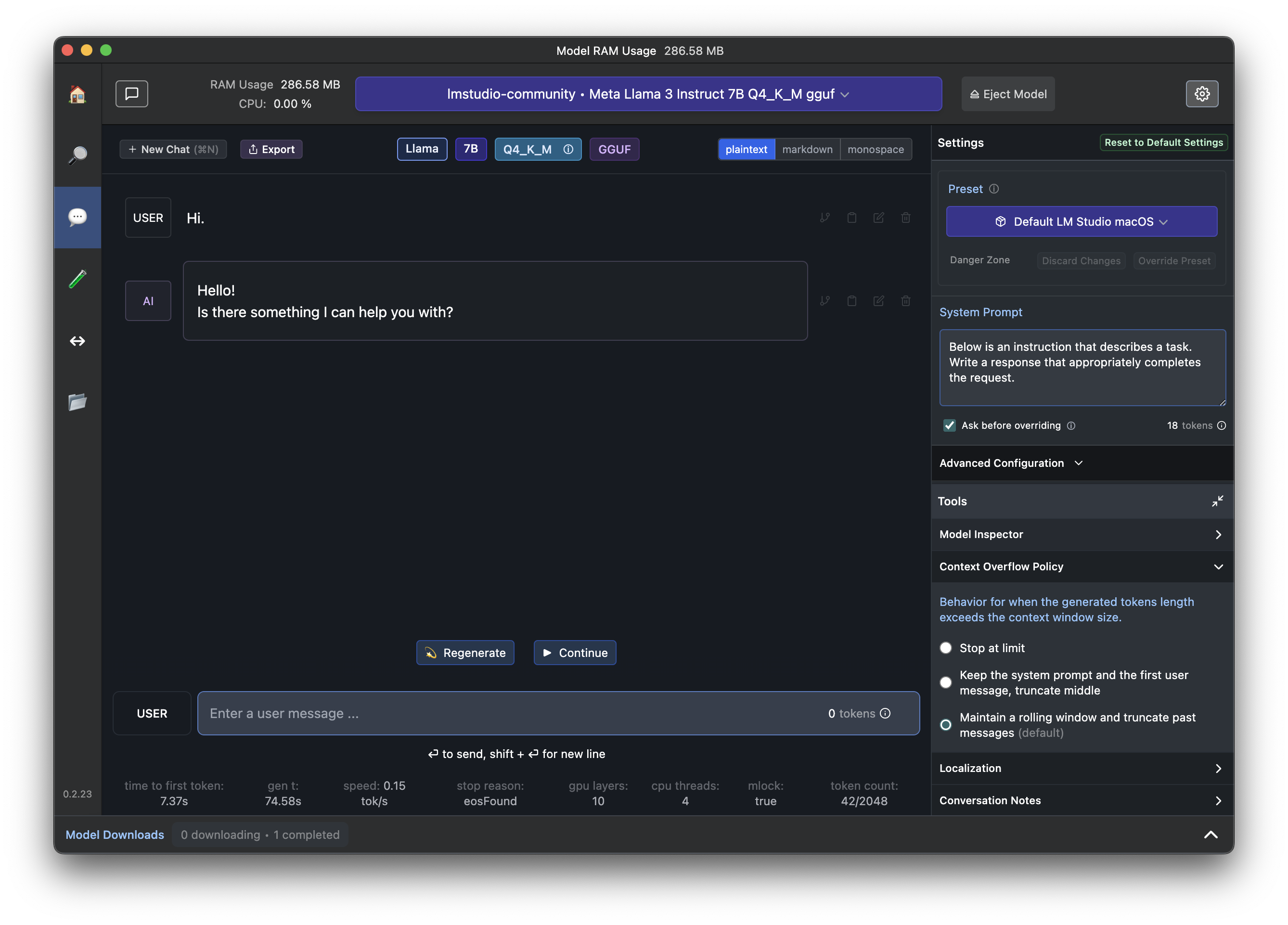 아무래도 기기의 성능에 따라 LM Studio 설정, 사용할 언어 모델, 사이즈 등을 고려해서 선택해야 할 것 같습니다.