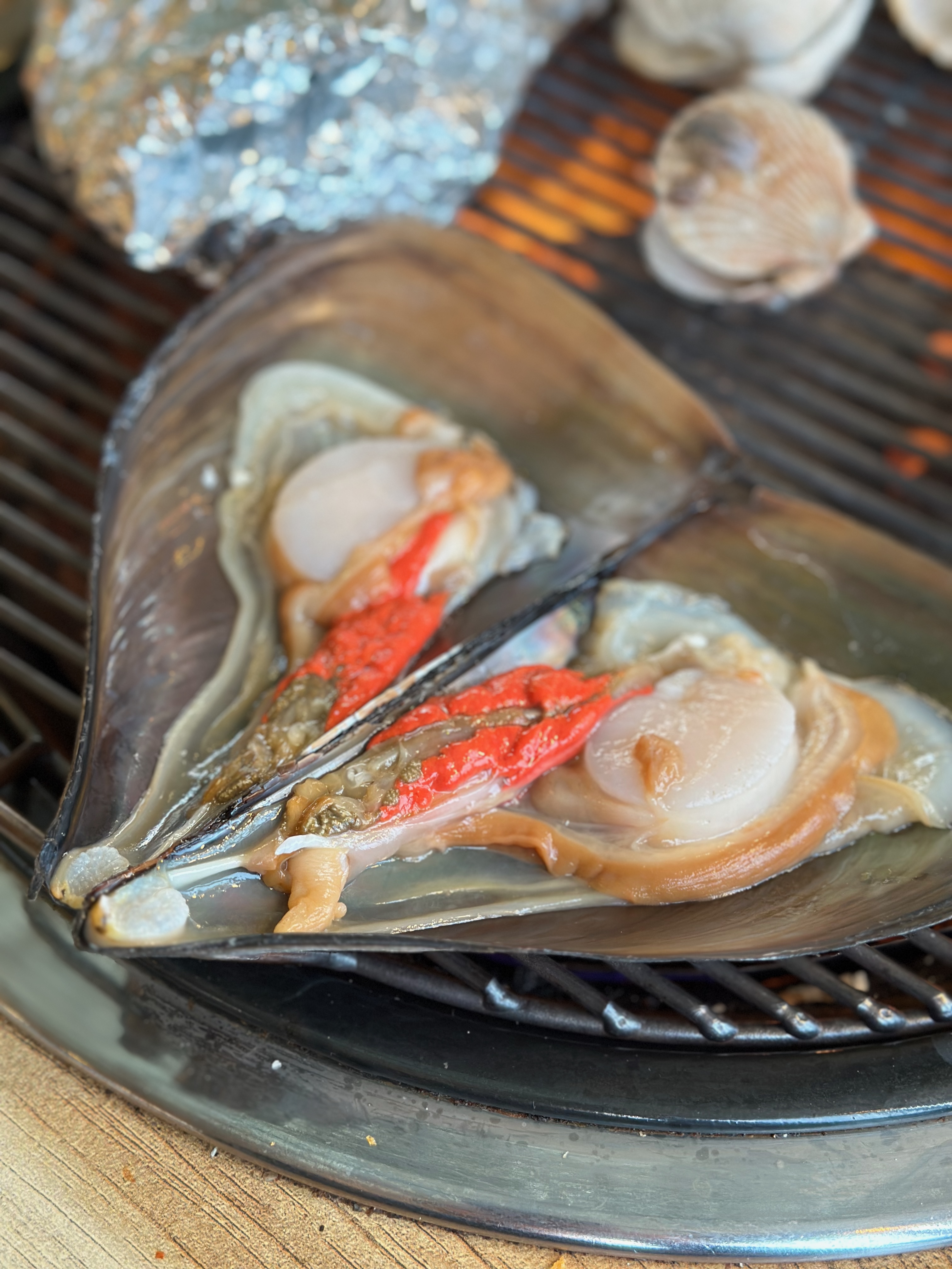 전복과 가리비를 불위에 올렸습니다.