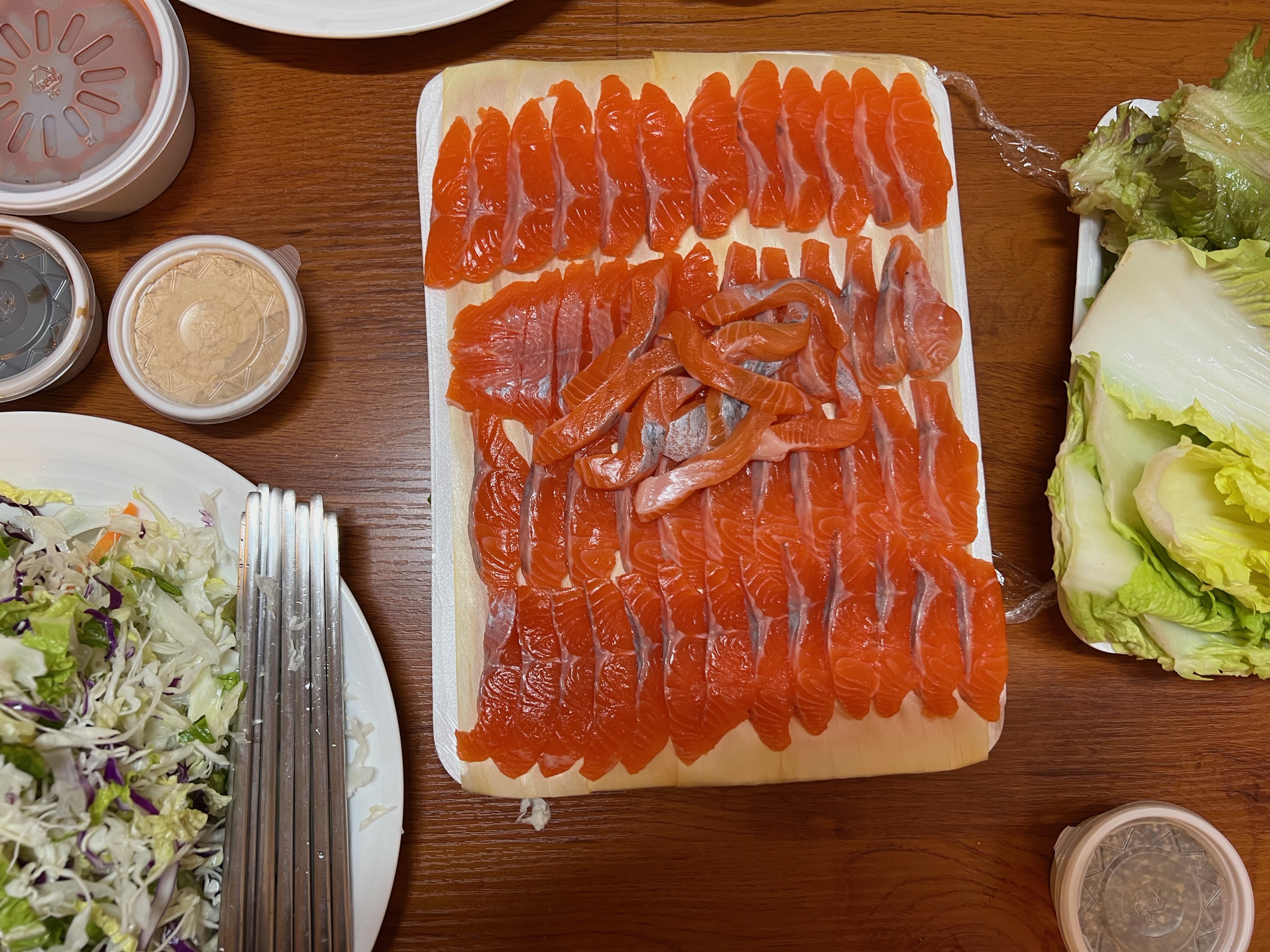 그래서 송어회를 포장하면 아이들과 먹을 수가 없어서 따로 챙겨줘야 했었는데