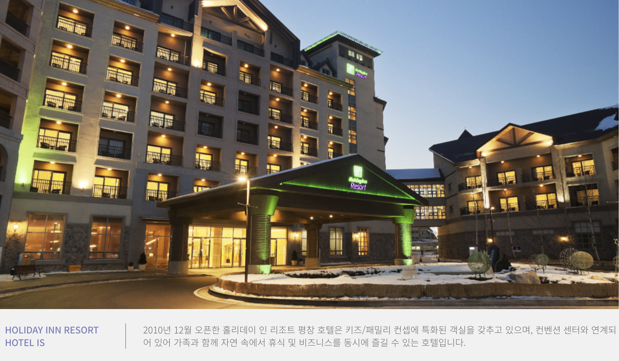 알펜시아는 가족단위, 스키 시즌에 사람이 많이 몰려서 적절하게 컨셉을 잡은 것 같습니다.