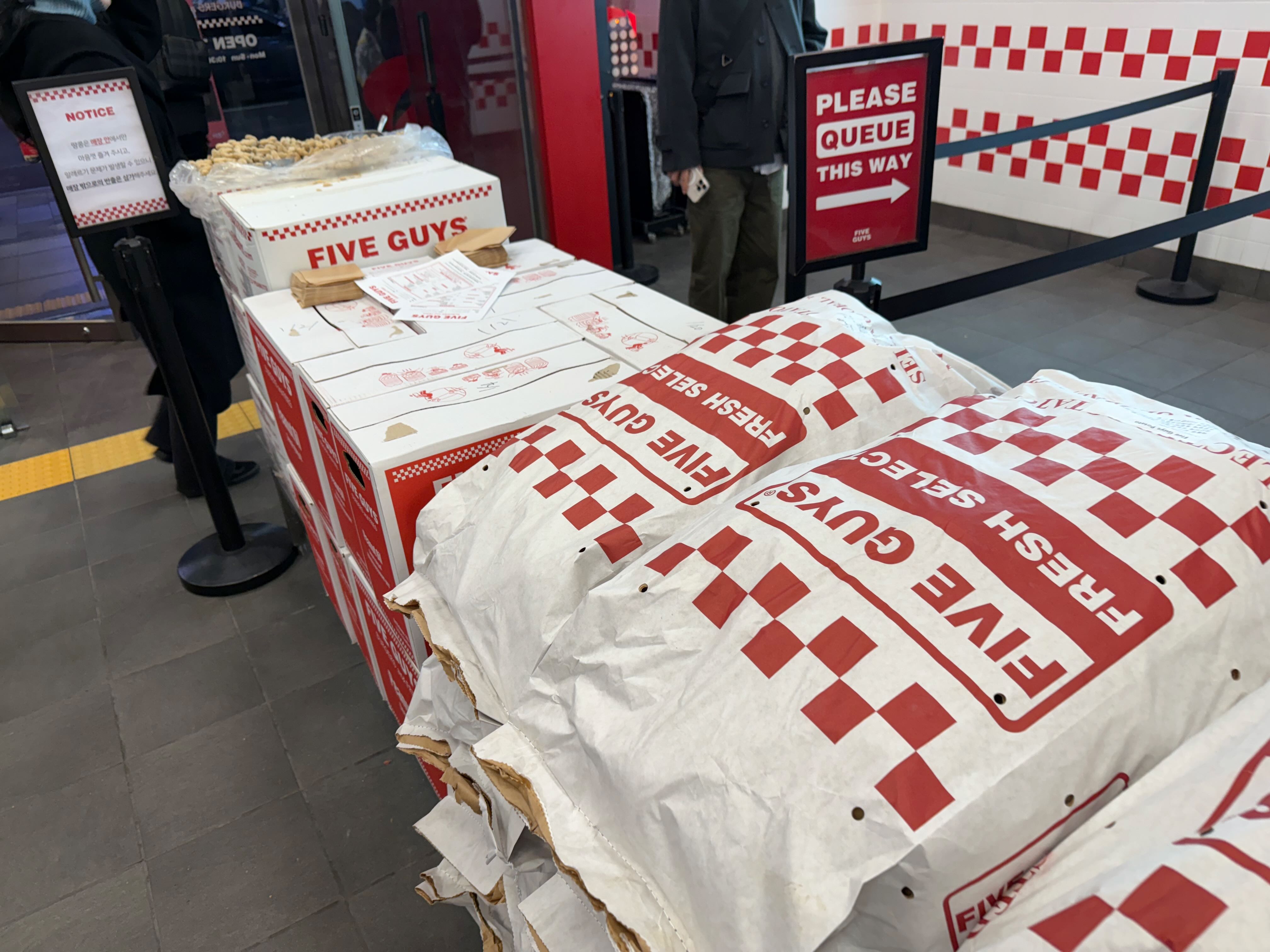 파이브가이즈 입구에서 담을 수 있는 땅콩은