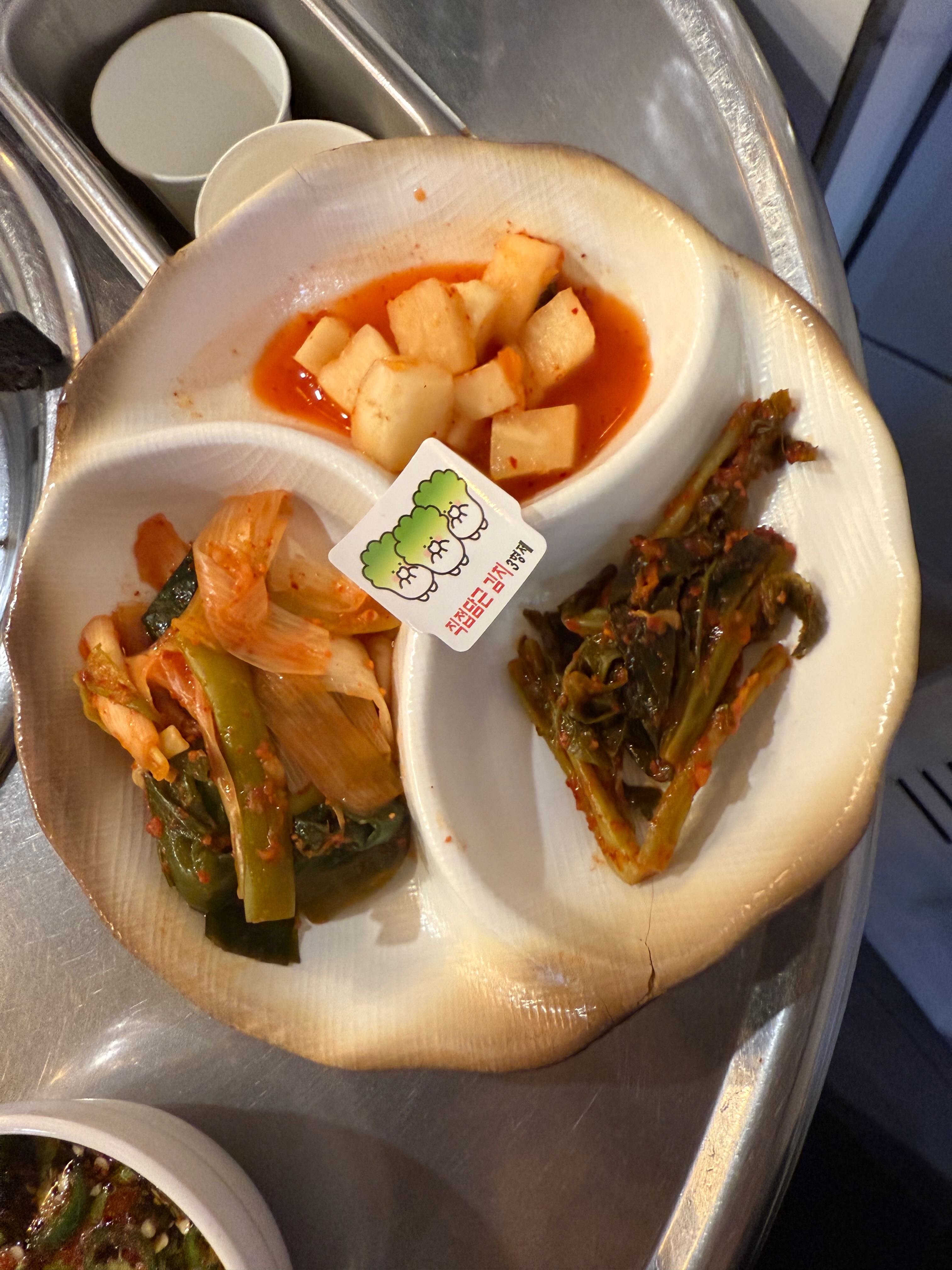 직접 담근 대파김치, 갓김치, 알타리무가 정갈하게 나옵니다.