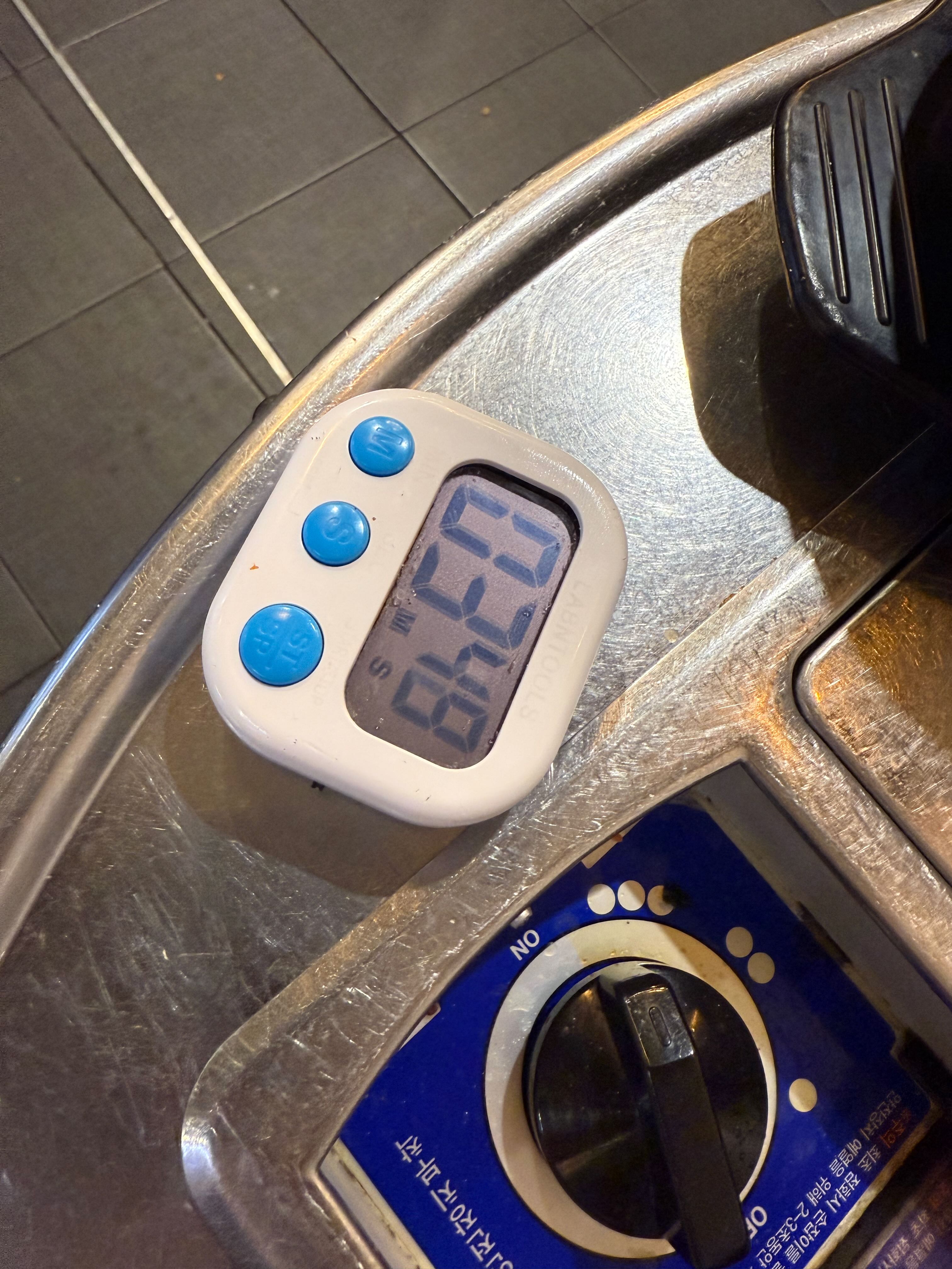 타이머를 갖다 놓고 타이머가 울리면 직원이 와서 뒤집어줍니다.