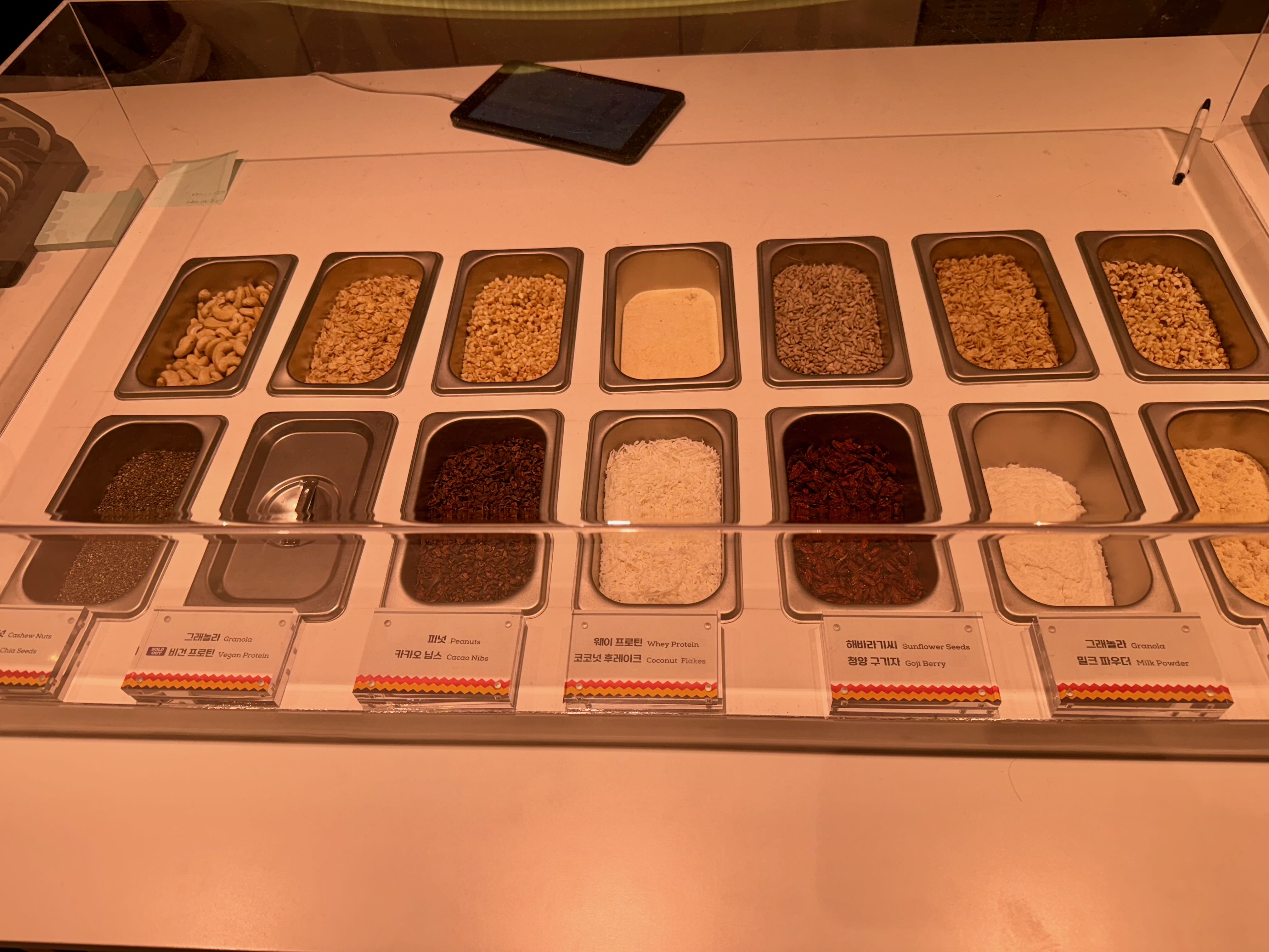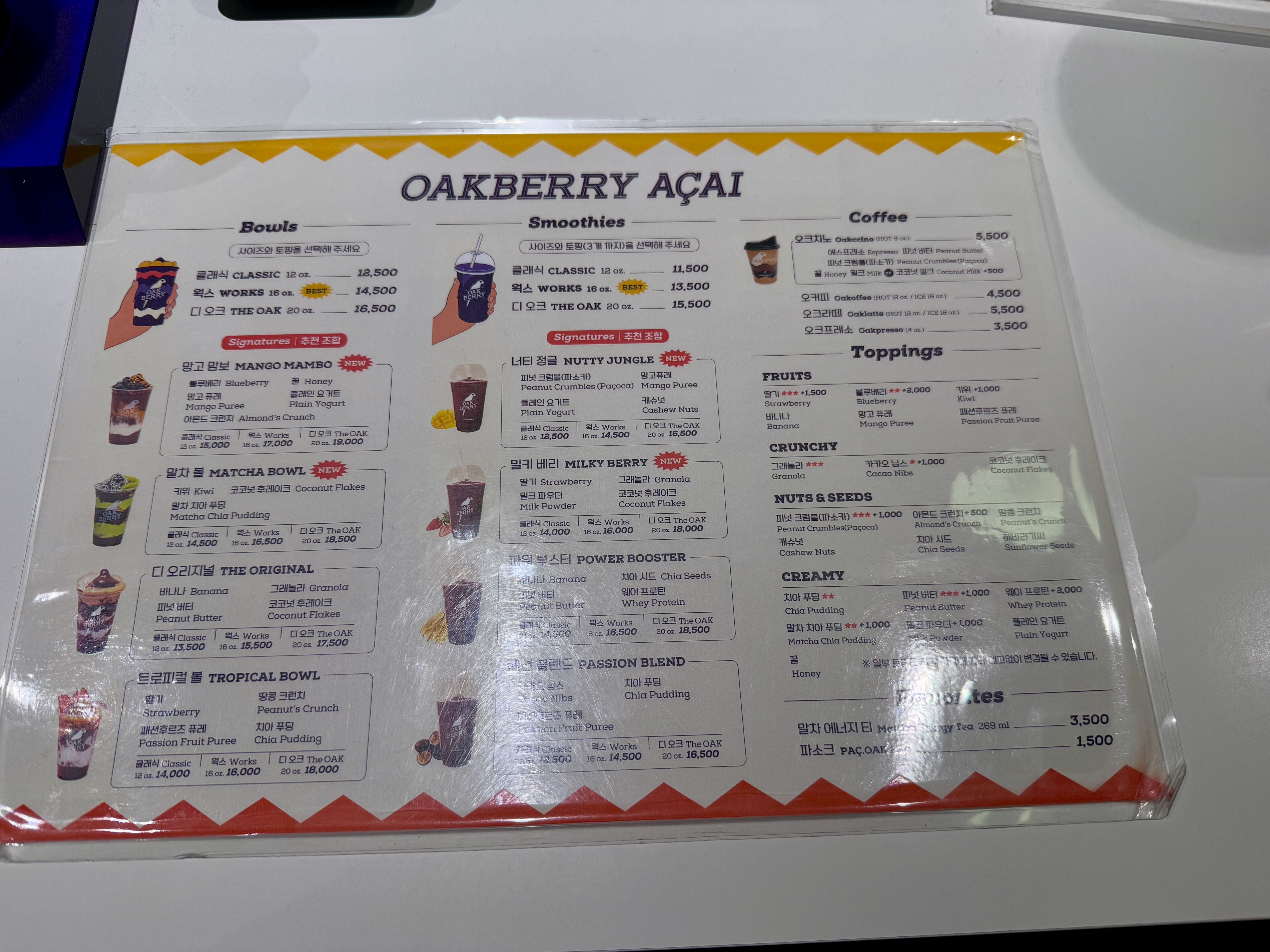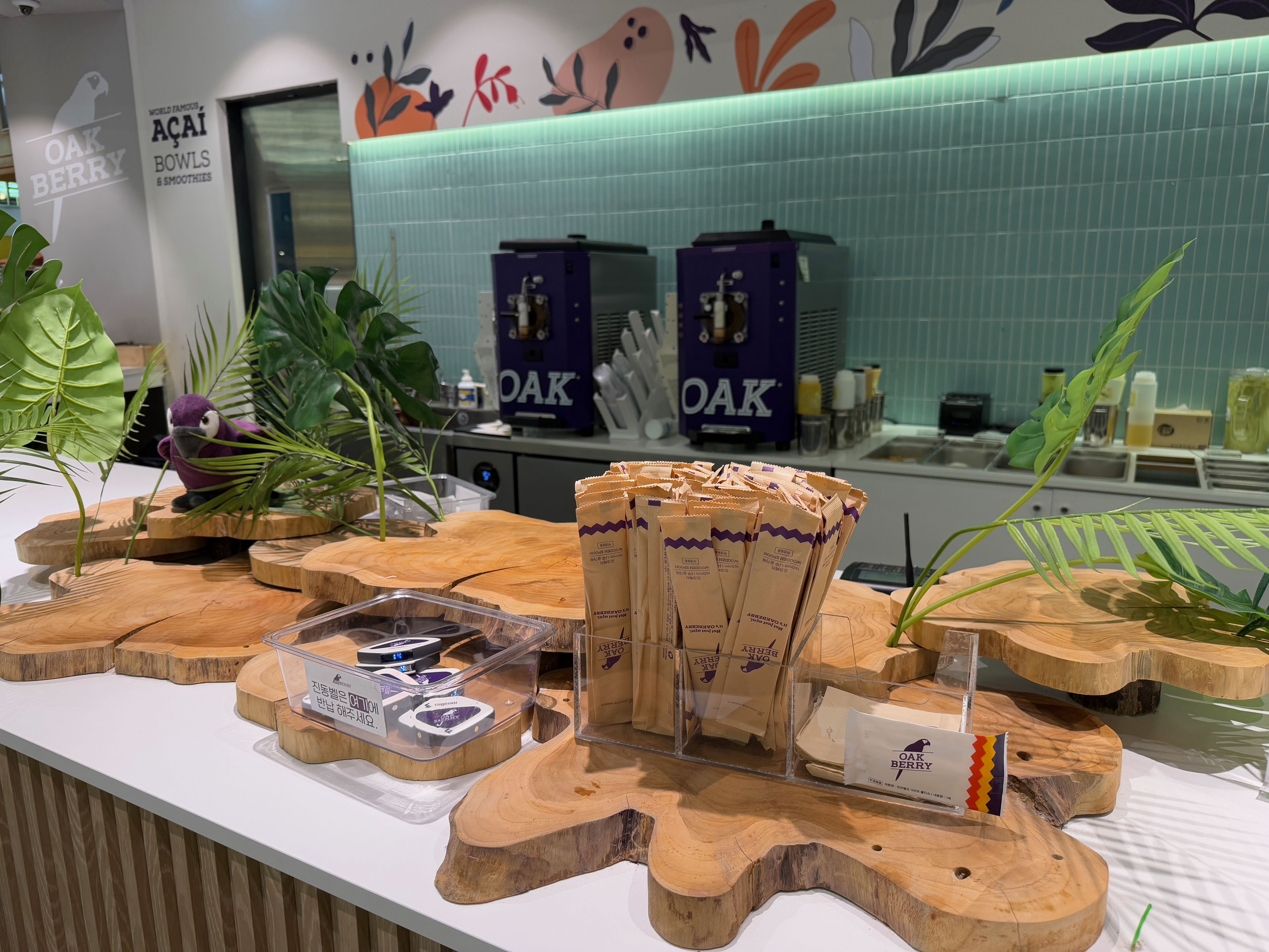 오크베리 아사이 옆 테이블에 자리를 잡고 맛을 보았습니다.