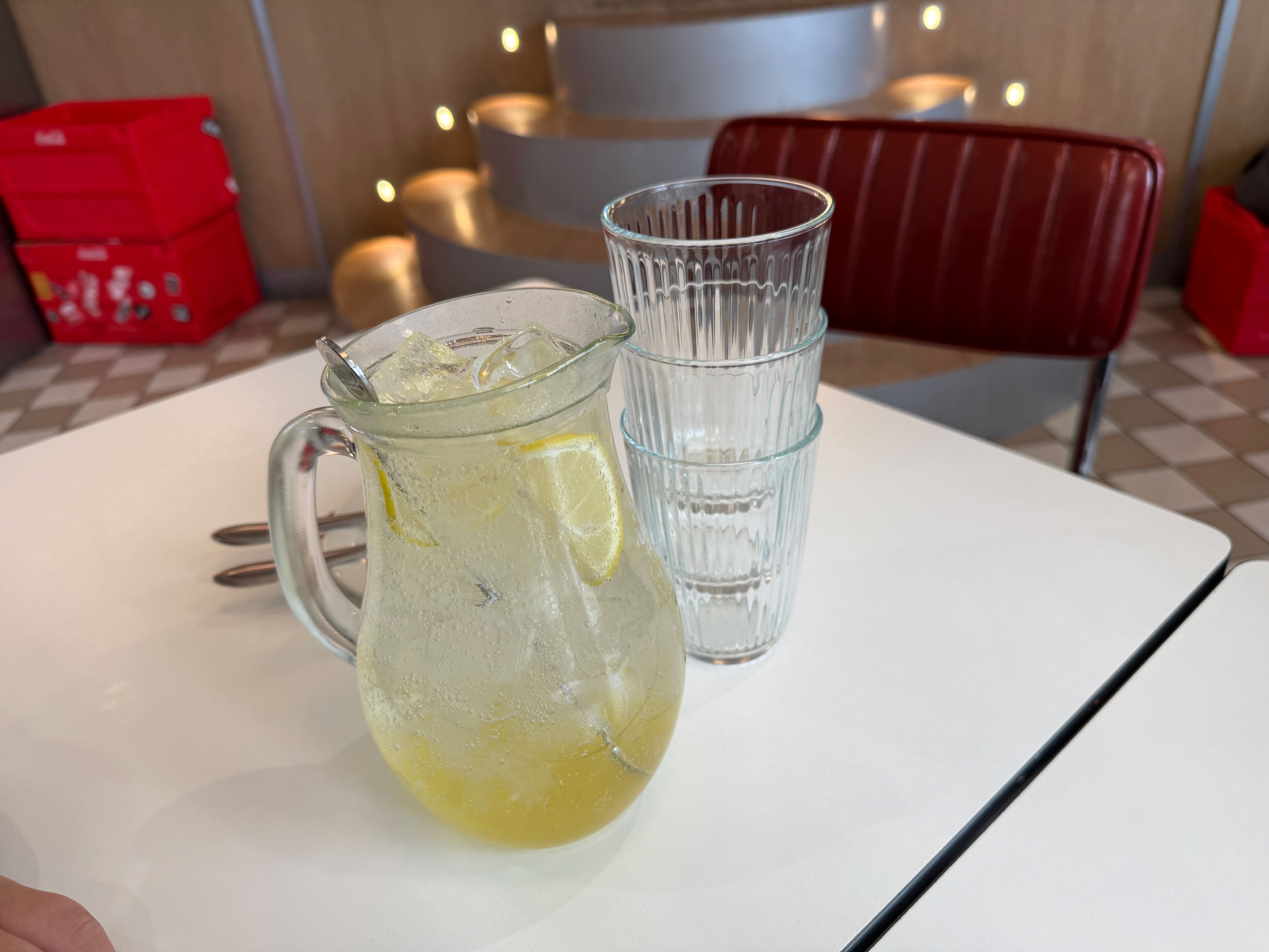 주문한 레몬에이드가 먼저 나왔어요.