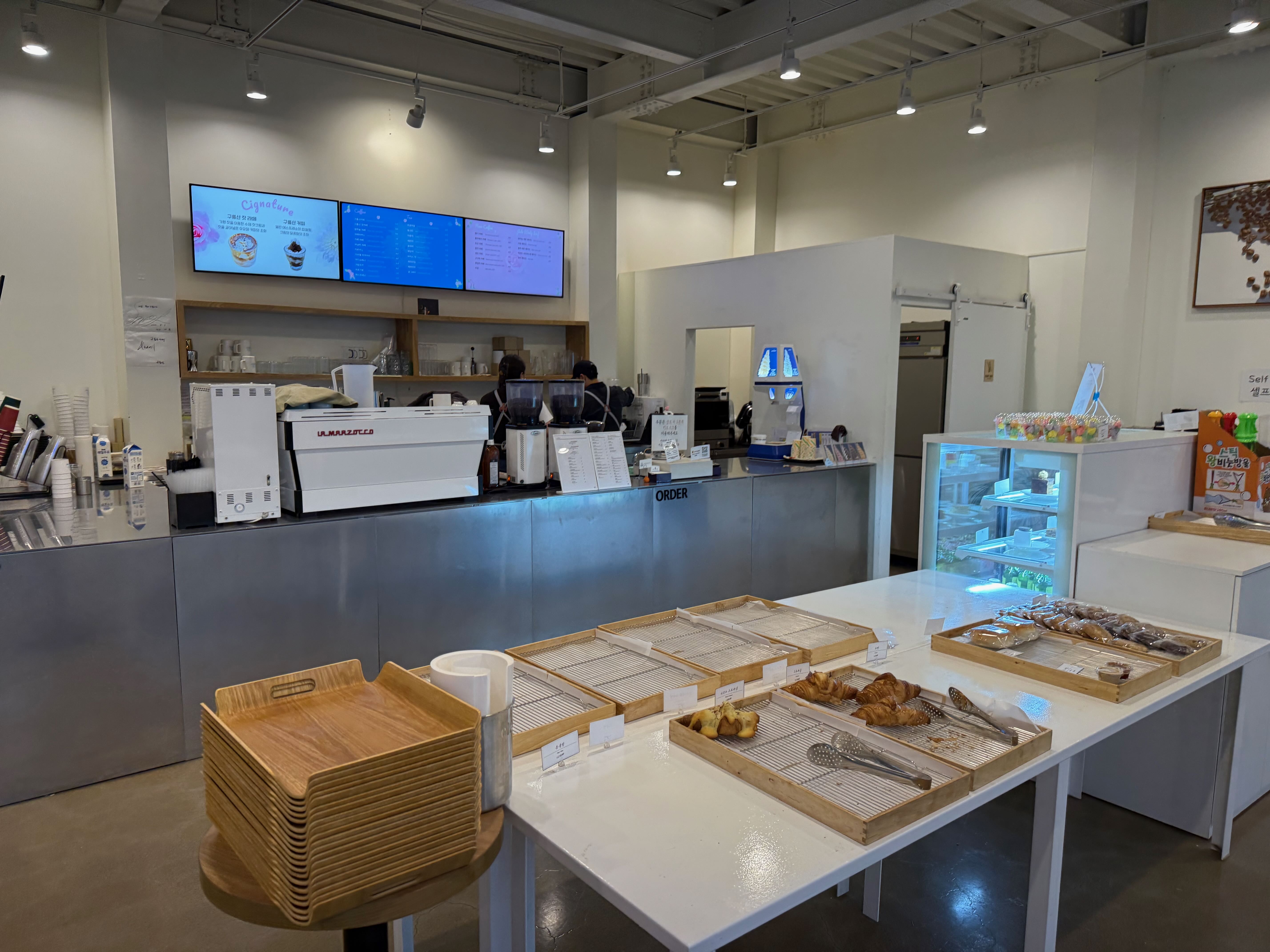 이제 다시 카페로 돌아가 구름산 잣 라떼와 디저트를 즐길 시간이에요.