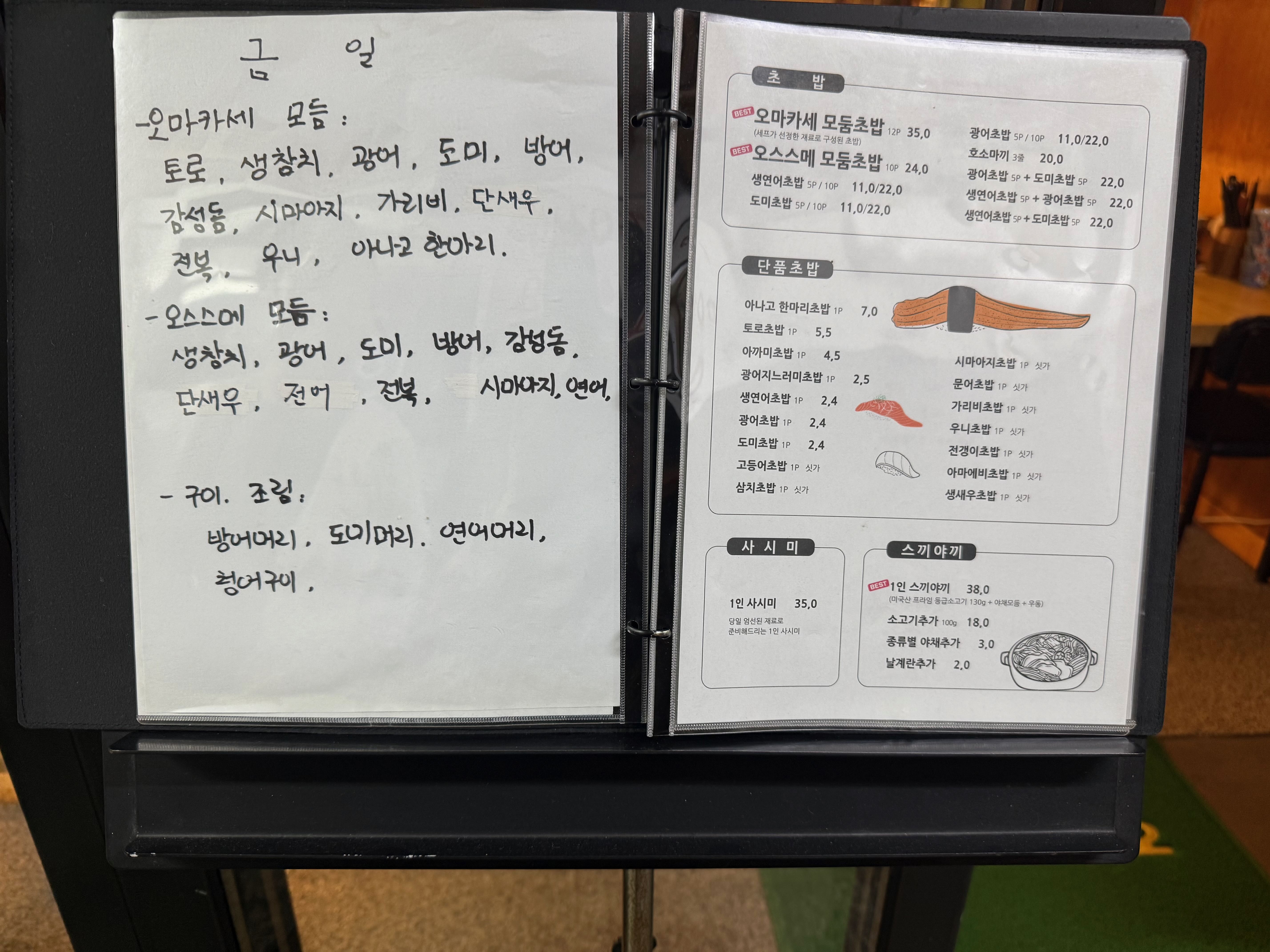 예전에 한 번 방문해서 초밥을 맛봤었는데, 이번에는 사시미를 먹어보기로 했습니다.