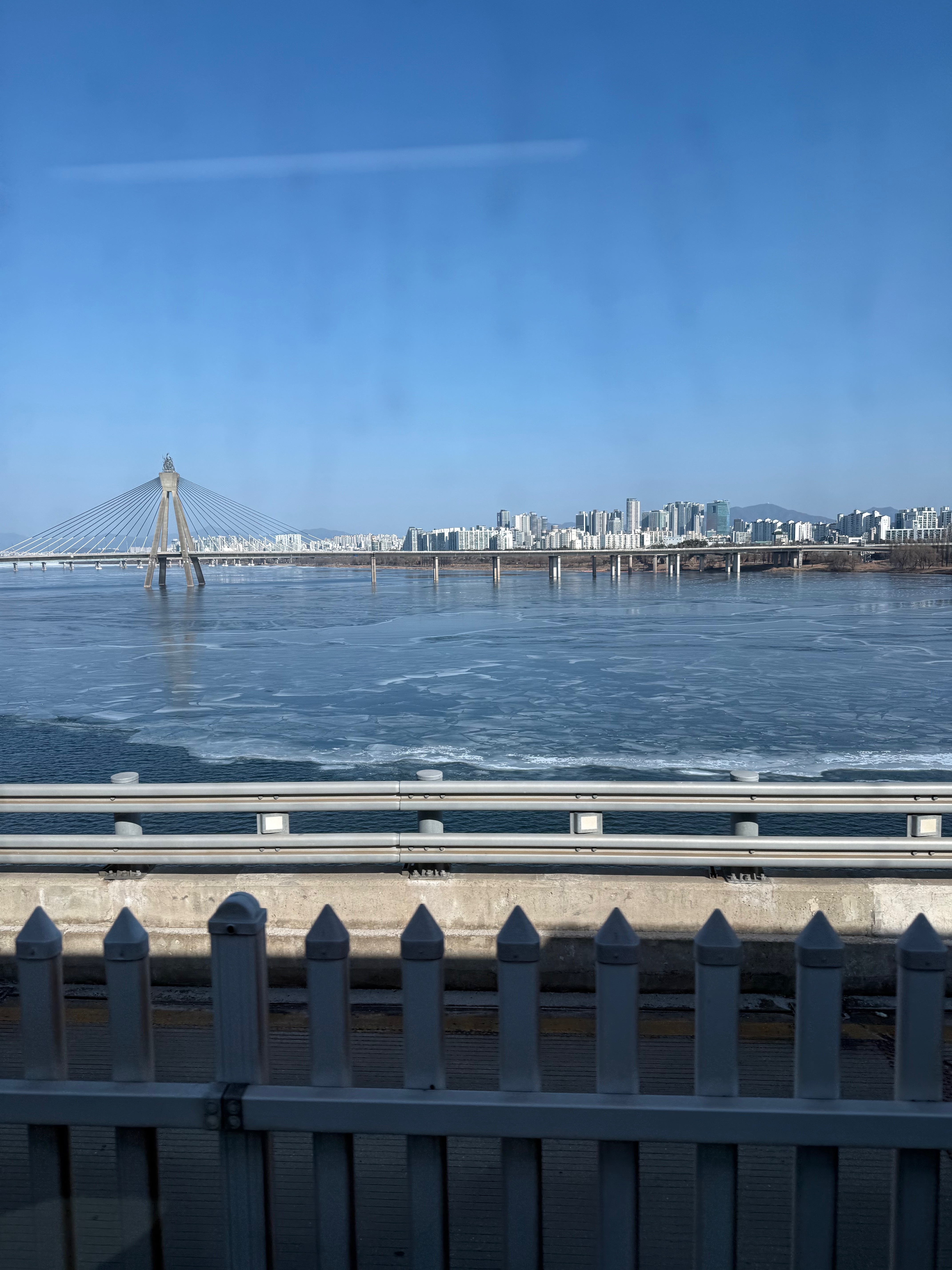 한강이 꽁꽁 얼어있네요.