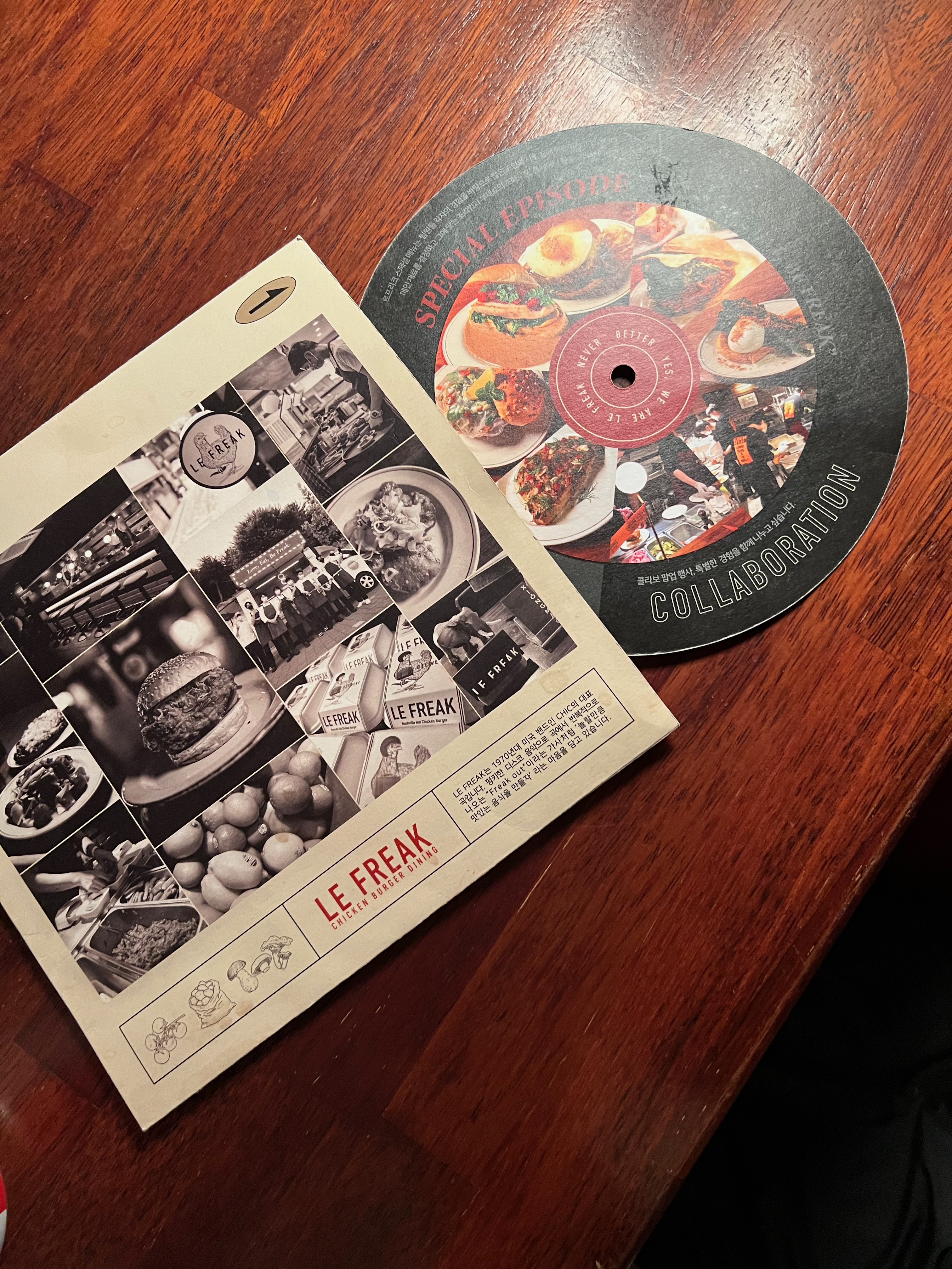 안에 CD모양으로 음식사진이나 메뉴개발을 어떻게 했는지 르프리크만의 철학이 담겨있었어요.
